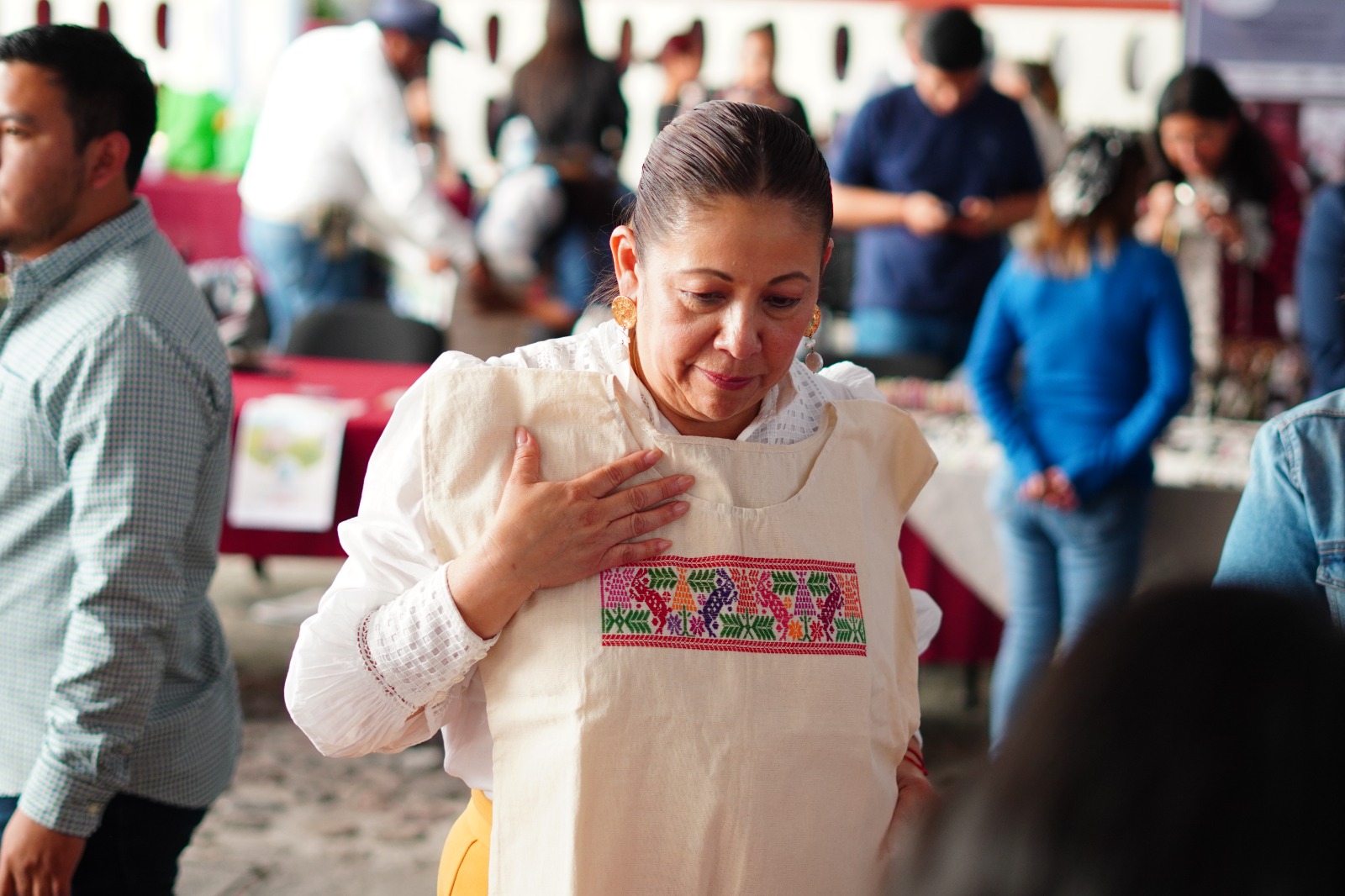 “Transformando Miradas” es una organización que capacita a mujeres artesanas para su empoderamiento económico en el municipio de Coyomeapan. Patricia Cruz Sánchez es integrante de este proyecto desde hace 17 años en la Sierra Negra. “Agradecemos al Gobierno del Estado y a la Secretaría de Bienestar por darnos este espacio para exponer nuestros productos de bordado”.