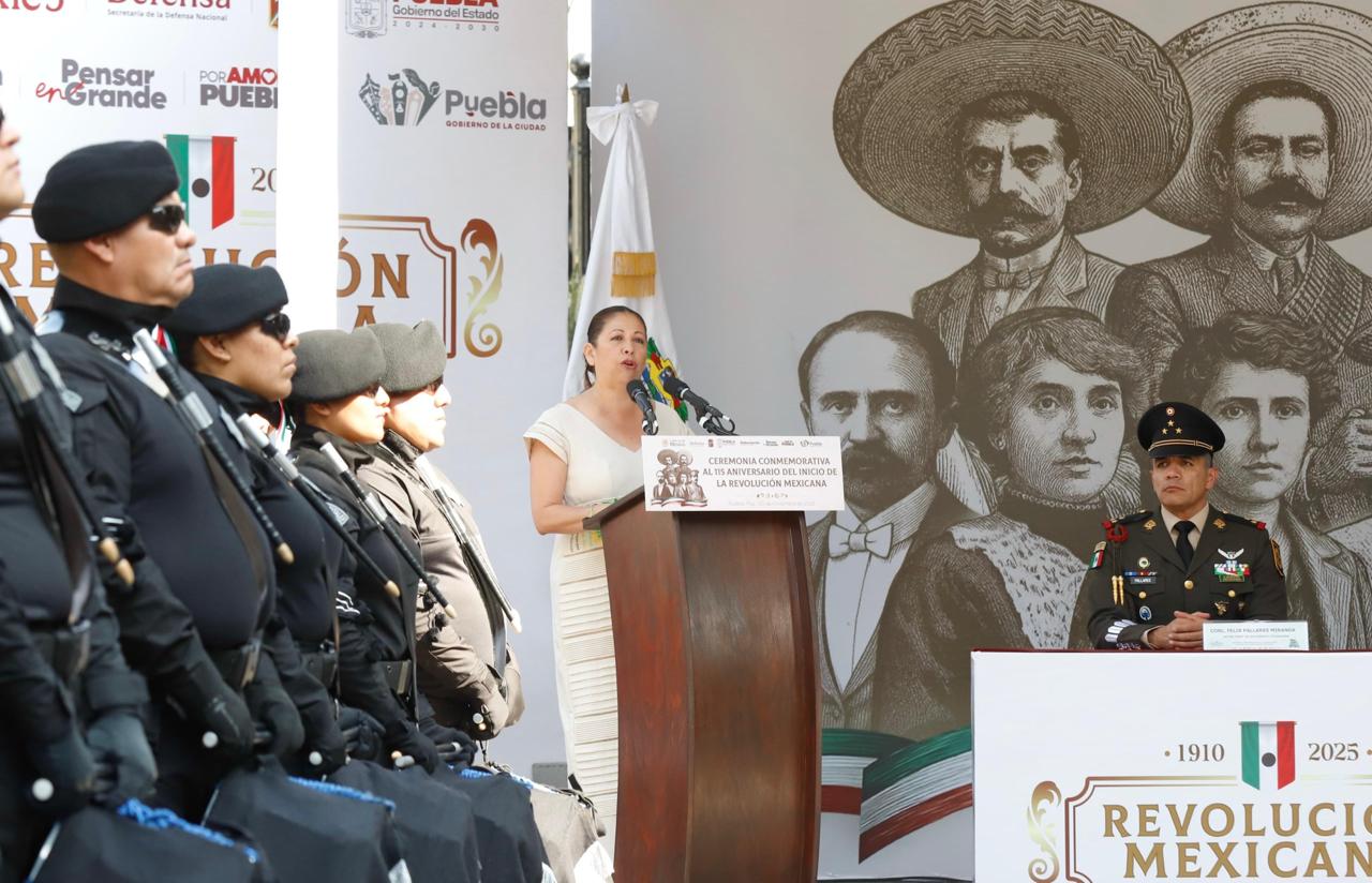 Como oradora oficial de la Ceremonia Conmemorativa al 115 Aniversario del Inicio de la Revolución Mexicana, la secretaria de Bienestar Laura Artemisa García Chávez recordó que a más de un siglo de distancia, tal y como lo soñaron las y los revolucionarios, hoy México es un país de libertades, donde los derechos de todas y todos no dependen del poder ni del dinero, sino de la calidad humana. Por ello, invitó a las y los poblanos a sumarse a la visión humanista del Gobierno del Estado de Puebla que encabeza el mandatario Alejandro Armenta y Pensar en Grande, hacer equipo, construir con valentía y con convicción.