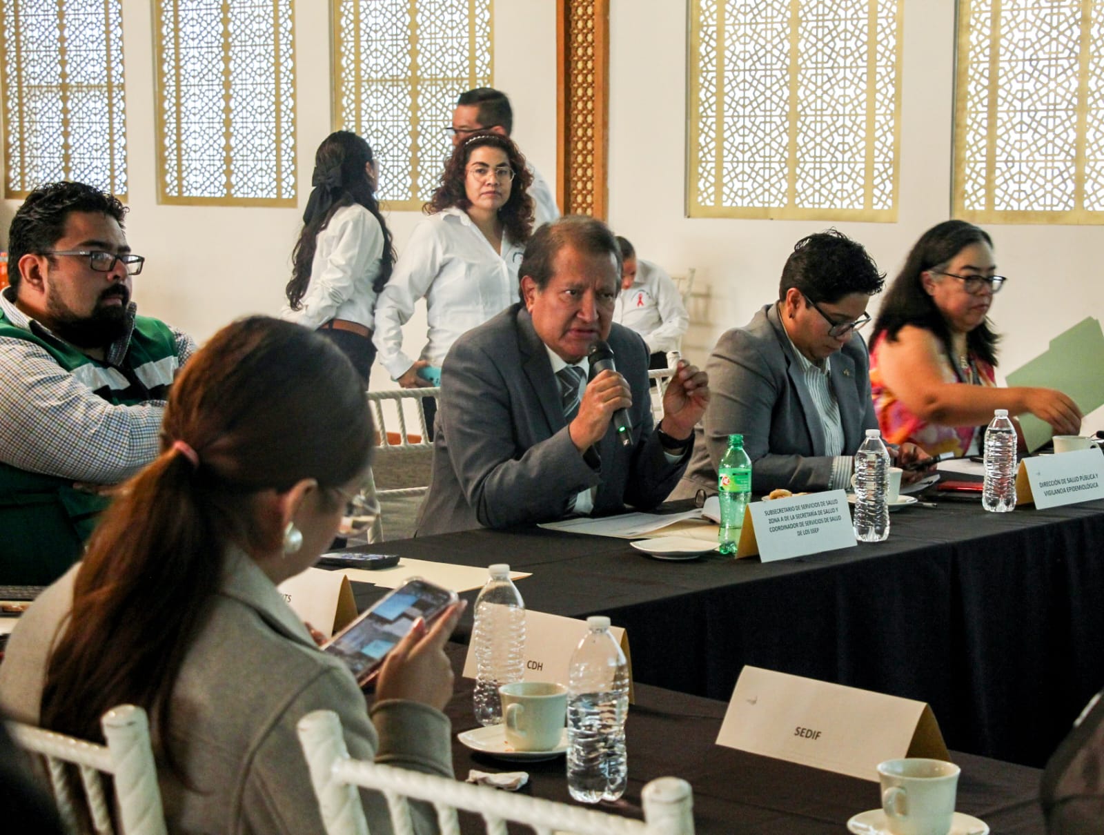 Entre las y los asistentes estuvieron la directora de Salud Pública y Vigilancia Epidemiológica, Crisbel Akaeena Domínguez Estrada, el coordinador estatal del Servicio Nacional de Salud Pública (SNSP), Pablo Salado Gutiérrez, y el secretario técnico de la dependencia, Cirilo Calderón Ramírez.