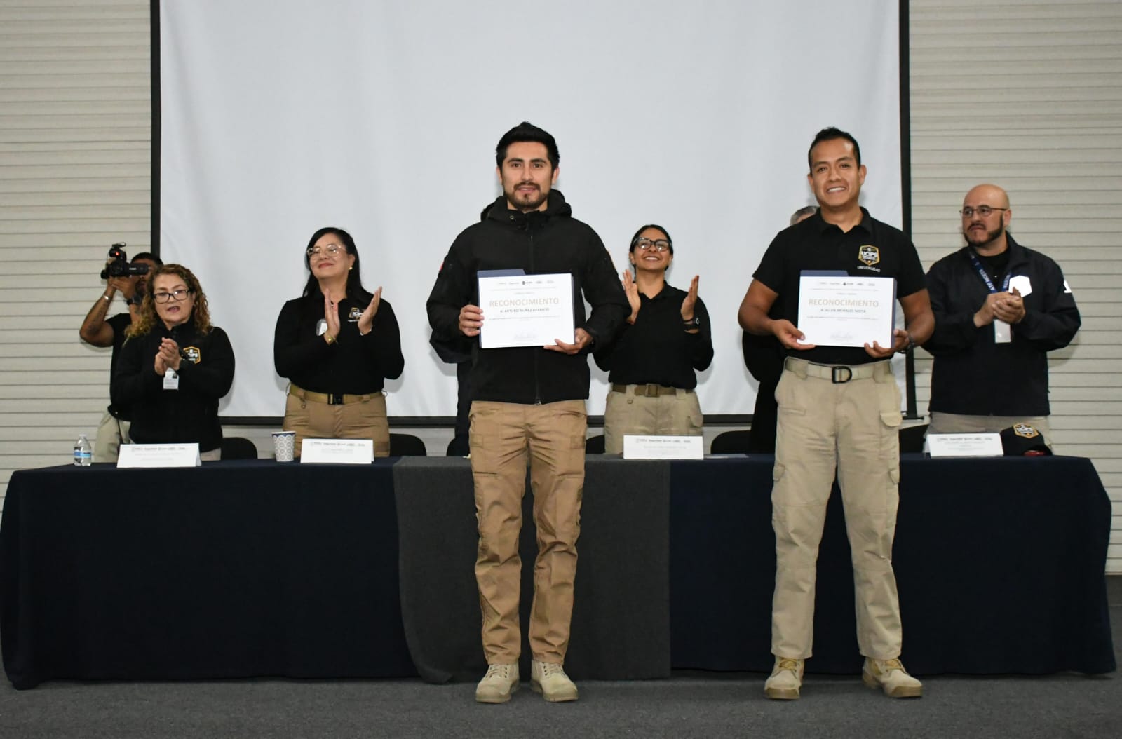 Durante la ceremonia, se reconoció a cinco tituladas y titulados de Educación Superior y a 20 del Bachillerato Técnico en Seguridad Ciudadana, en un acto académico que reafirma la ruta de profesionalización policial en la entidad, como lo ha marcado el gobernador Alejandro Armenta.