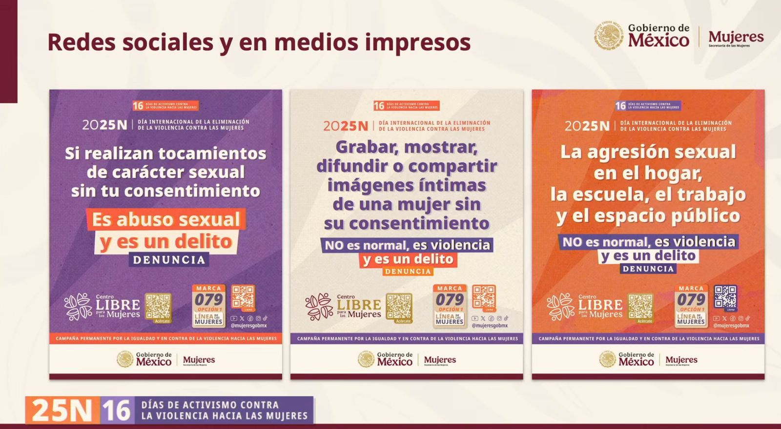 El gobierno federal anunció un amplio calendario de acciones territoriales para los 16 días de activismo, con actividades en municipios, colonias, centros libres y escuelas. Estas incluyen entregas masivas de la Cartilla de Derechos de las Mujeres, convenios con plataformas digitales para movilidad segura, cine-debates, caminatas para detectar riesgos urbanos, murales comunitarios, capacitaciones y encuentros nacionales. Con la firma del compromiso, las y los gobernadores consolidan una agenda conjunta para garantizar espacios seguros, justicia efectiva y una vida libre de violencia para todas las mujeres del país.