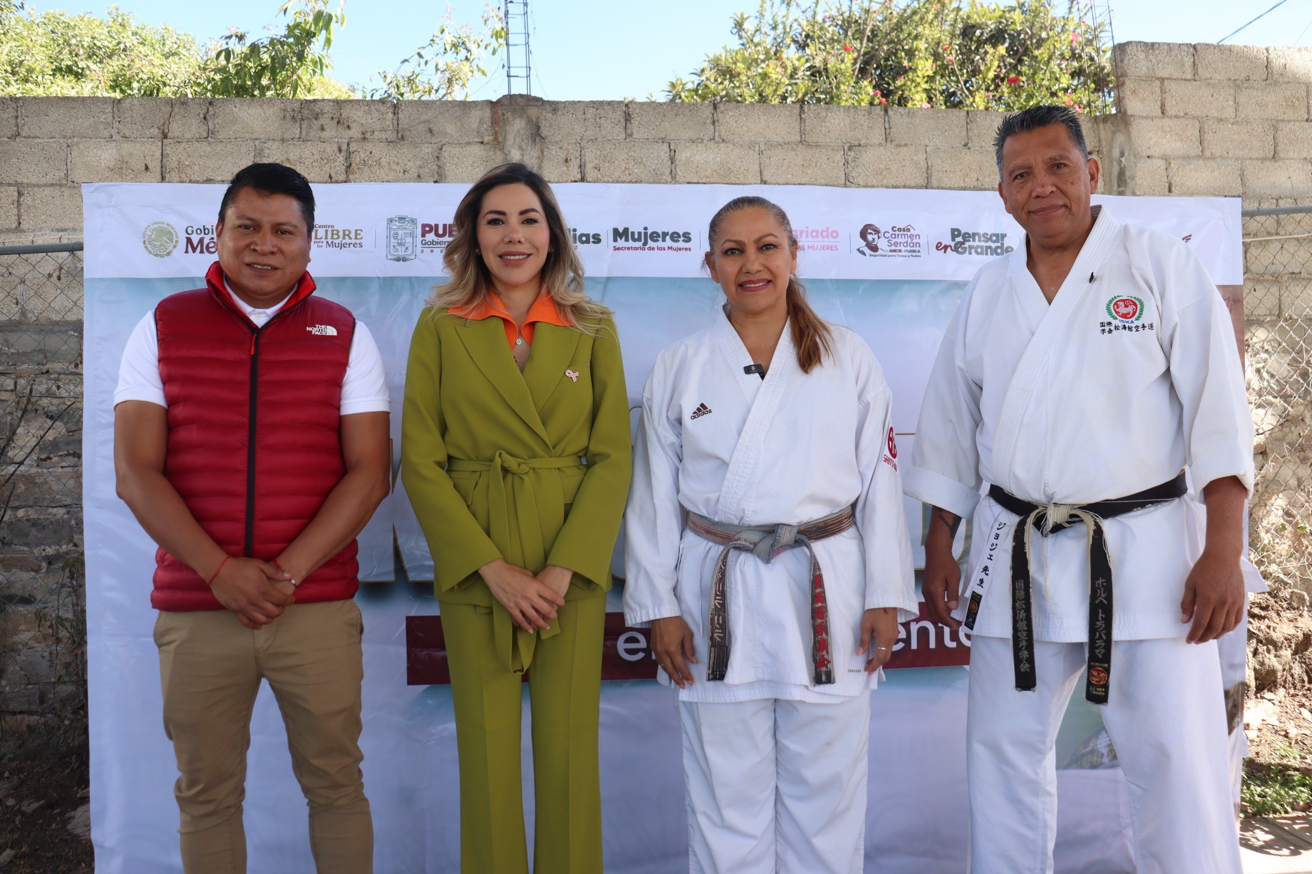 Posteriormente, se impartió el Taller de Karate-Do “Libres en Movimiento”, una actividad que ofreció a las mujeres de la junta auxiliar herramientas de autocuidado y técnicas básicas de defensa personal, con el propósito de fortalecer su autonomía, seguridad y confianza.