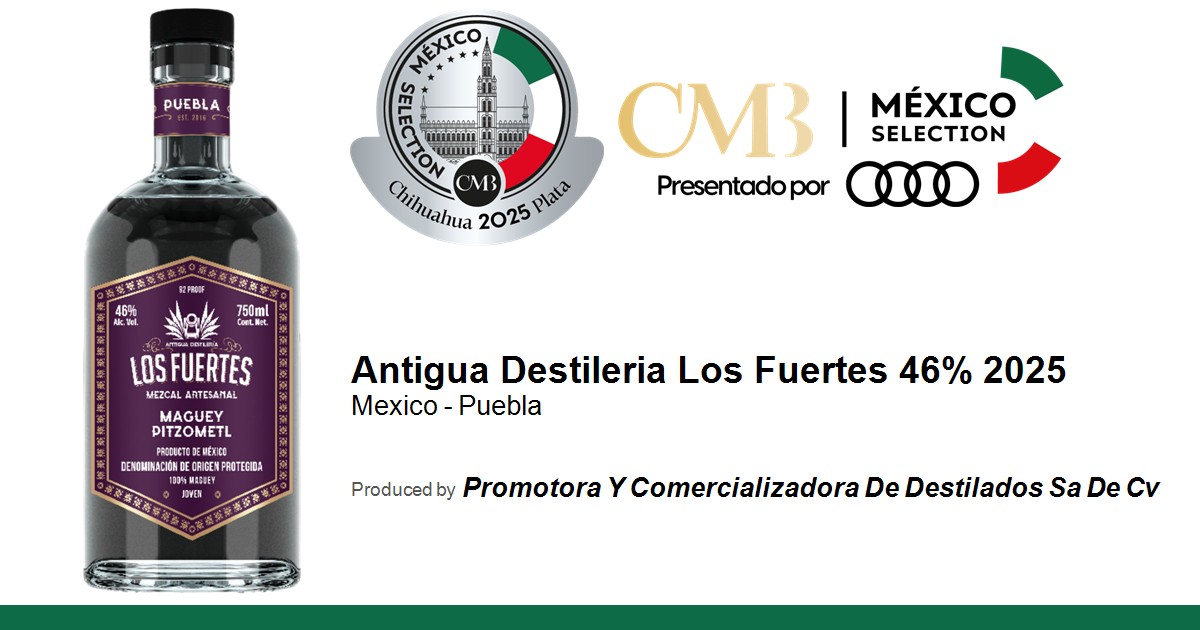 A partir de esta evaluación, el secretario de Desarrollo Económico y Trabajo (SEDETRA), Víctor Gabriel Chedraui, informó que las distinciones correspondieron a los siguientes mezcales poblanos: Mezcal Teresita de Jesús 2025; Recuerdos de Mi Historia Espadín Capon; Mezcal Artesanal Rancho de Quillo 2025 —premiado como Revelación Mezcal—; Mi Ofrenda Tepeztate; Mi Ofrenda Destilado con Mole Poblano; Mezcal Las Ruinas; Antigua Destilería Los Fuertes 46 por ciento 2025; Antigua Destilería Los Fuertes 40 por ciento 2025; Inspiraty; Green Gold Tobalá Joven; Don Pilón Ensamble Papalometl 40 por ciento; Candinga Agaves Papalometl Madre Cuixhe Jabalí 2023; Arráncame la Vida Salmania; Arráncame la Vida Pechuga con Mole Poblano; Arráncame la Vida Espadilla; Arráncame la Vida Arroqueño; Mezcal Agave Rosa; 103 Voces 2025; Mezcal 60 Fierros Arreando Mulas; Mezcal Joven Ancestral Pichometl 11 Latidos.