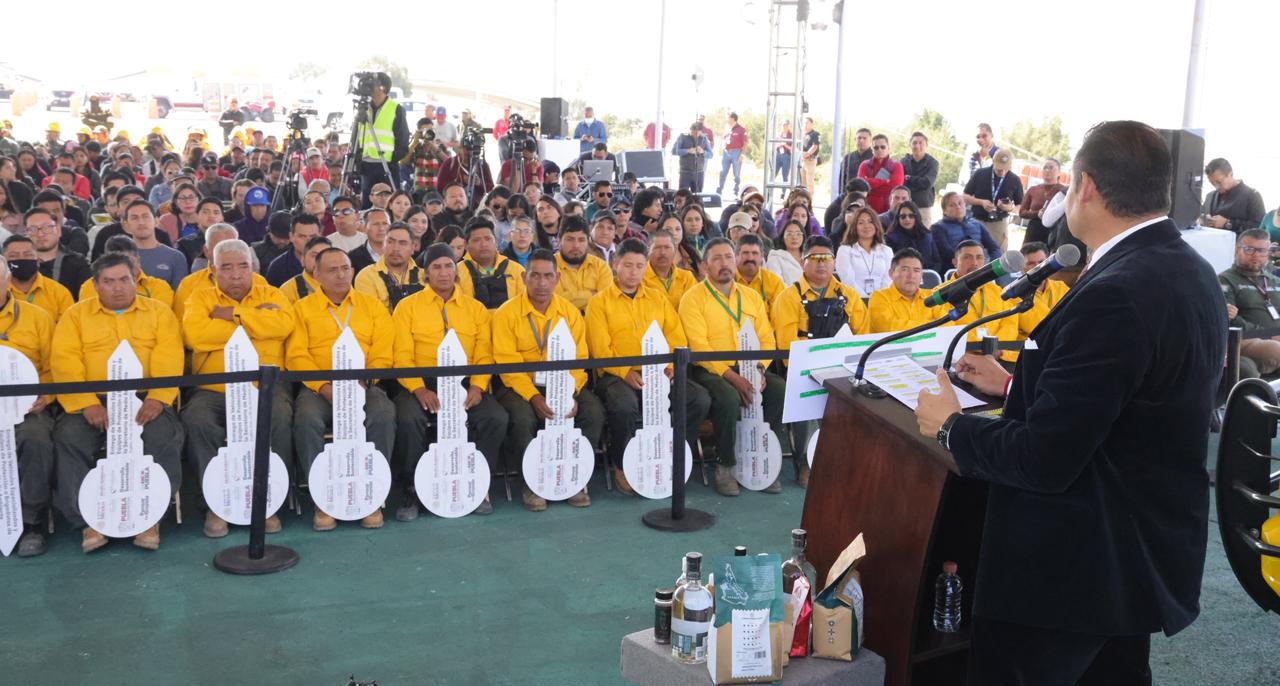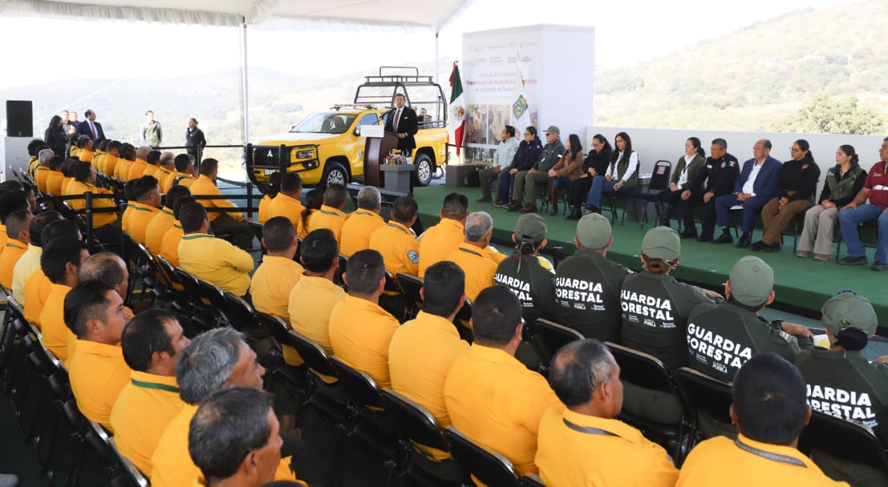 AMOZOC, Pue.- Durante el inicio de trabajos de prevención de Incendios Forestales en el Estado de Puebla 2026, el gobernador Alejandro Armenta reafirmó su compromiso con el bienestar de las y los elementos de la Guardia y Policía Forestal, al entregar equipo de protección, nuevos vehículos y anunciar que el próximo año dos helicópteros se sumarán al combate de estos siniestros.