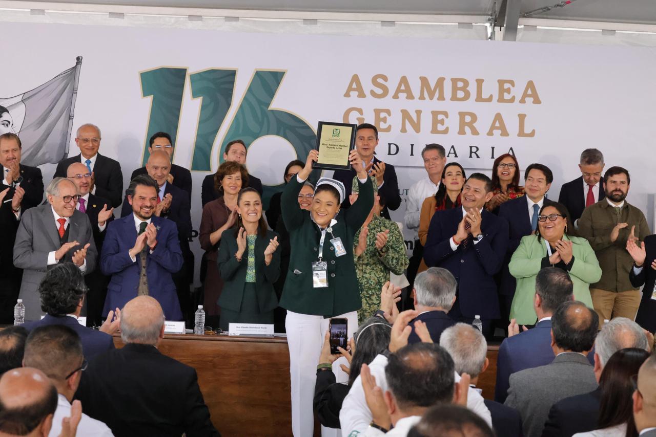 En el marco de la 116 Asamblea General del IMSS, la presidenta de México indicó que el instituto es motivo de orgullo nacional, al conformar la red de hospitales más grande de América Latina. Enfatizó que en 12 años el instituto aumentará a 11 mil camas, casi tres veces más de lo que creció en 36 años, durante el periodo neoliberal.