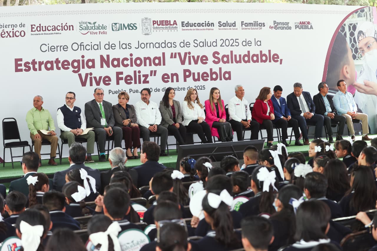 CIUDAD DE PUEBLA, Pue.- Concluyen las jornadas de salud 2025 de la estrategia nacional “Vive Saludable, Vive Feliz”, iniciada por la presidenta Claudia Sheinbaum el pasado 12 de marzo del presente año; mismas que tuvieron el propósito de contribuir al bienestar y la salud de las niñas y los niños para promover hábitos saludables. En Puebla se atendieron 601 mil 195 estudiantes de 4 mil 151 escuelas públicas de nivel primaria, gracias al trabajo coordinado de las secretarías de Educación Pública, Salud, el Sistema Estatal para el Desarrollo Integral de la Familia (SEDIF) y el Instituto Mexicano del Seguro Social (IMSS).