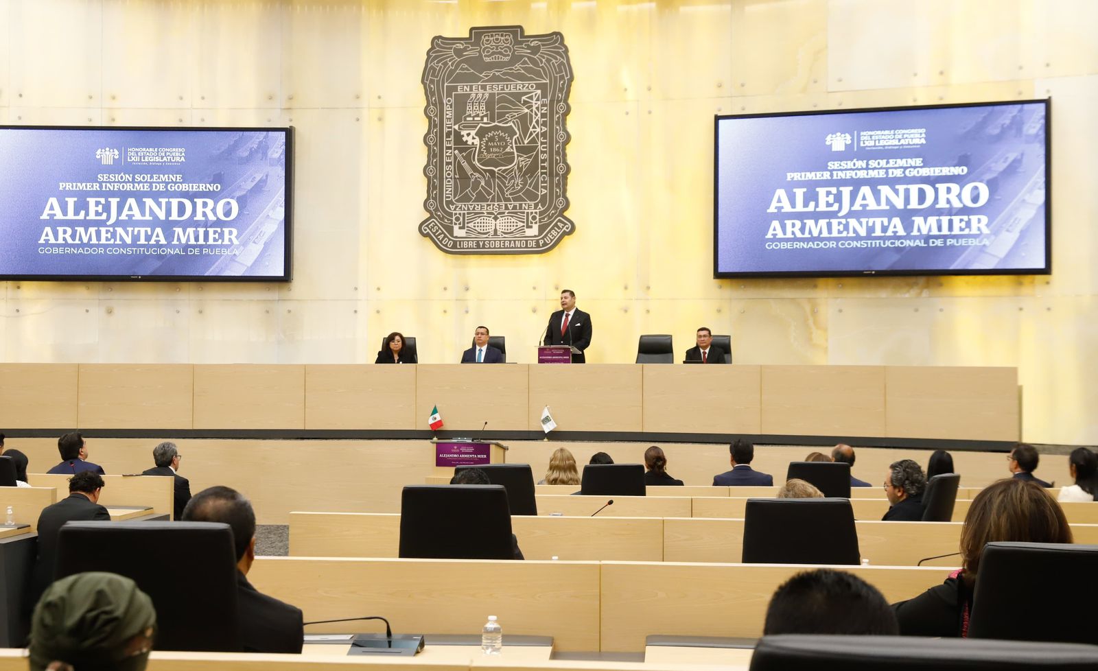 CIUDAD DE PUEBLA, Pue.- Al entregar su Primer Informe de Gobierno durante la Sesión Solemne del Honorable Congreso del Estado, el gobernador Alejandro Armenta resaltó que su gestión resolvió la deuda del Museo Internacional del Barroco, que representaba un saqueo de 8 mil millones de pesos para las finanzas del estado y con cuyos ahorros construyen obra orientada a la seguridad, la justicia y a la riqueza comunitaria, pilares del modelo de gobierno basado en la bioética social.