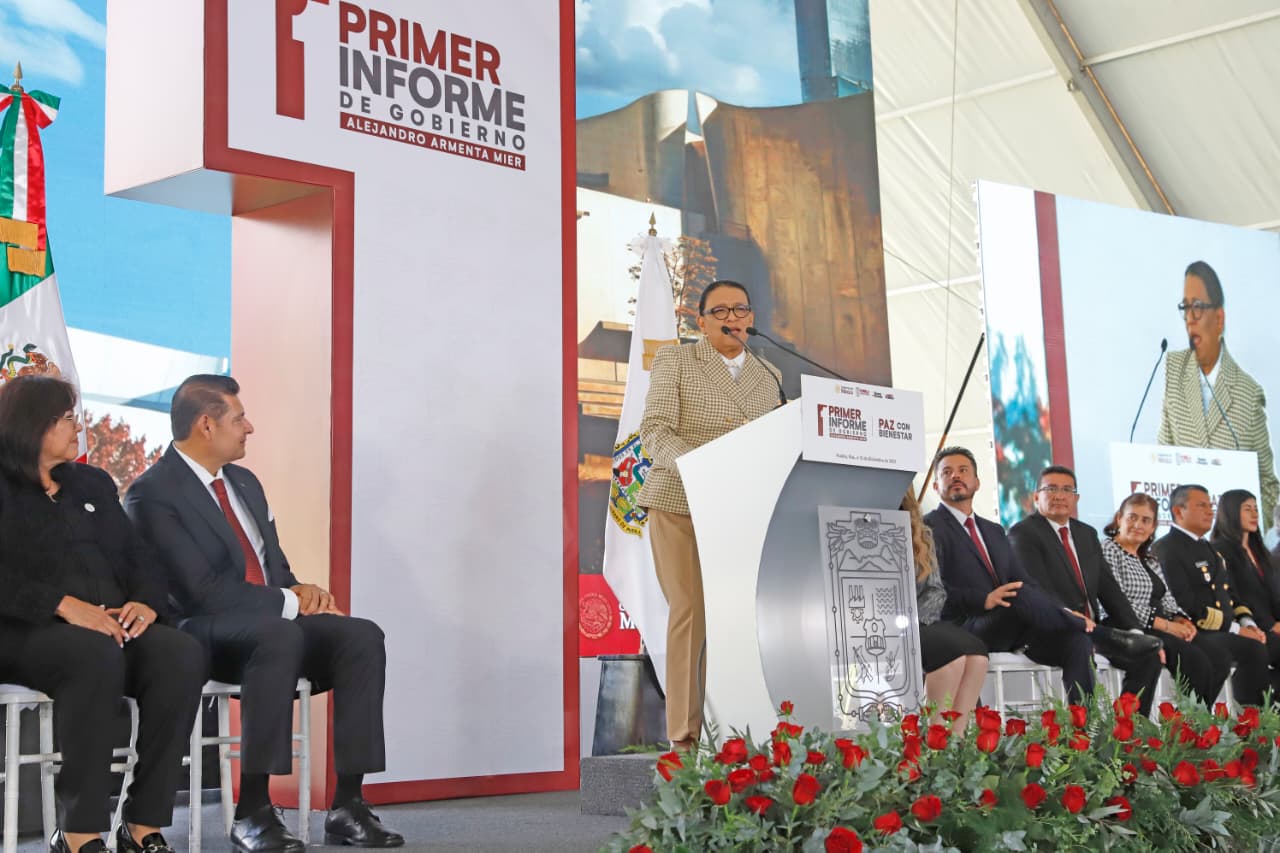 En su discurso, el Gobernador Alejandro Armenta rindió cuentas sobre los resultados en materia de Seguridad y Paz con el Plan Puebla Segura, Bienestar con el programa emblemático de Obra Comunitaria y el apoyo histórico al campo, salud pública, deporte para las y los jóvenes, economía incluyente, así como ciencia y tecnología. Especial atención mereció la respuesta rápida y oportuna para las comunidades afectadas por las lluvias de octubre en la Sierra Norte, Nororiental y Negra de Puebla en coordinación permanente con las fuerzas armadas y el gobierno federal.