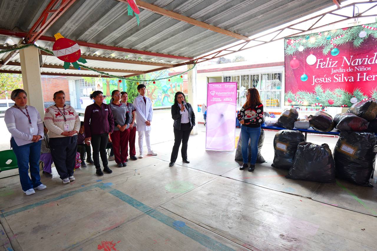 En el Jardín de Niños "Jesús Silva Herzog”, de la localidad de San Sebastián Tepalcatepec en San Pedro Cholula, autoridades educativas y representantes del Voluntariado de la USEP realizaron la entrega de las prendas de manera directa a las y los beneficiarios.