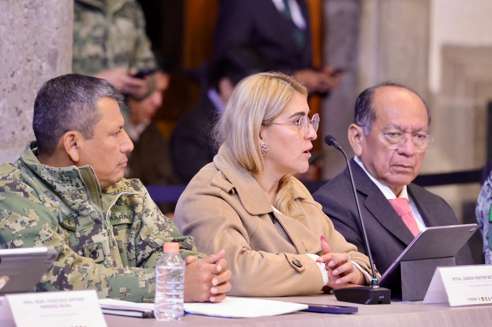 El gobernador Alejandro Armenta estuvo acompañado por el comandante de la XXV Zona Militar, general Francisco Antonio Enríquez Rojas; el secretario de Gobernación, Samuel Aguilar Pala; el titular de Seguridad Pública del Estado, vicealmirante Francisco Sánchez González y la Fiscal General del Estado, Idamis Pastor Betancourt.
