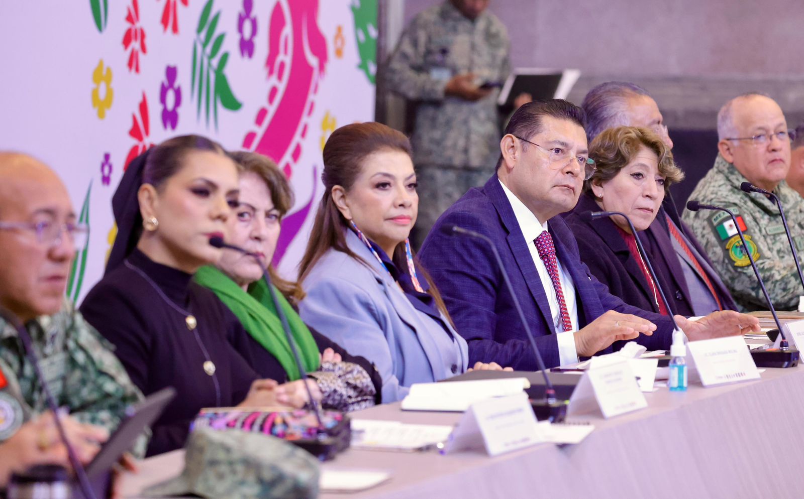 En la mesa de trabajo estuvieron presentes las gobernadoras de Morelos, Margarita González Saravia; del Estado de México, Delfina Gómez Álvarez; de Guerrero, Evelyn Salgado Pineda; así como representantes de los estados Hidalgo, Querétaro y Tlaxcala. También participaron autoridades y altos mandos de la Secretaría de la Defensa Nacional (Defensa), Secretaría de la Marina (Semar), Guardia Nacional (GN), y titulares de las Fiscalías estatales.