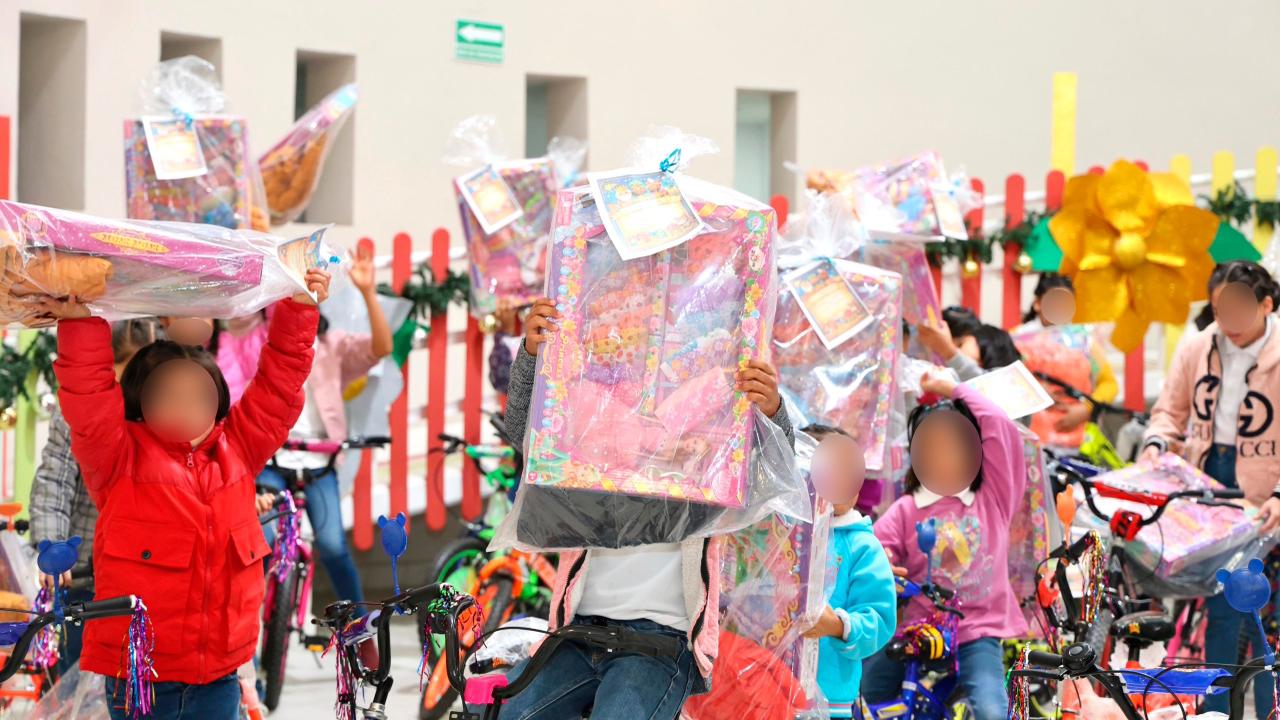 Al despertar, experimentaron la sorpresa de encontrar sus regalos bajo el árbol de Navidad. Cada uno de ellos fue beneficiado con una bicicleta, una chamarra y un juguete, gracias a la sensibilidad de la presidenta del Patronato del Sistema Estatal para el Desarrollo Integral de la Familia (SEDIF), Ceci Arellano, cuya complicidad con los Reyes hizo posible que esta tradición se transformara en un momento de alegría y esperanza para todas y todos.