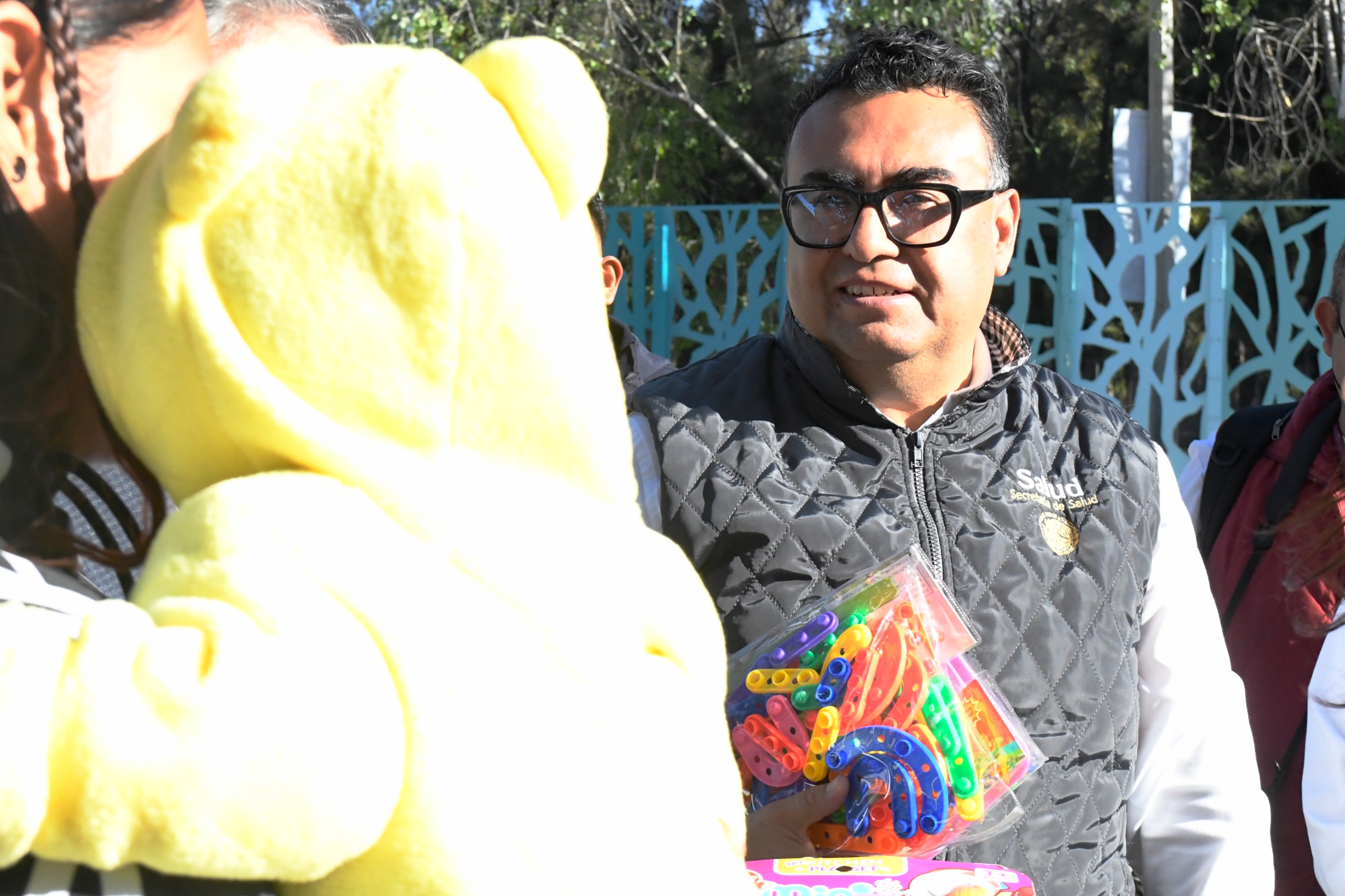 CIUDAD DE PUEBLA, Pue.- Entre sonrisas y miradas llenas de ilusión, este miércoles la magia del Día de Reyes llegó a las unidades hospitalarias del sur de la capital poblana, donde niñas y niños en atención médica recibieron alrededor de 500 juguetes, como muestra de la visión humanista y solidaria del gobernador Alejandro Armenta.
