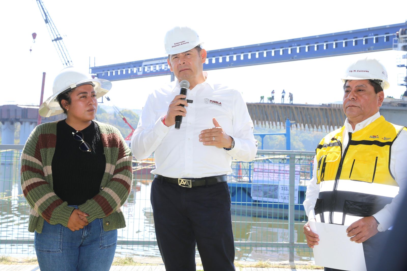 Durante un recorrido de supervisión, el mandatario informó que la construcción del Puente de la Transformación, registra un avance del 65 por ciento y beneficiará a más de 450 mil familias. Refirió que el puente que comunicará a San Baltazar Tetela con los Ángeles Tetela, cambiará la condición de marginación de los habitantes a condiciones de desarrollo, justicia, y seguridad.