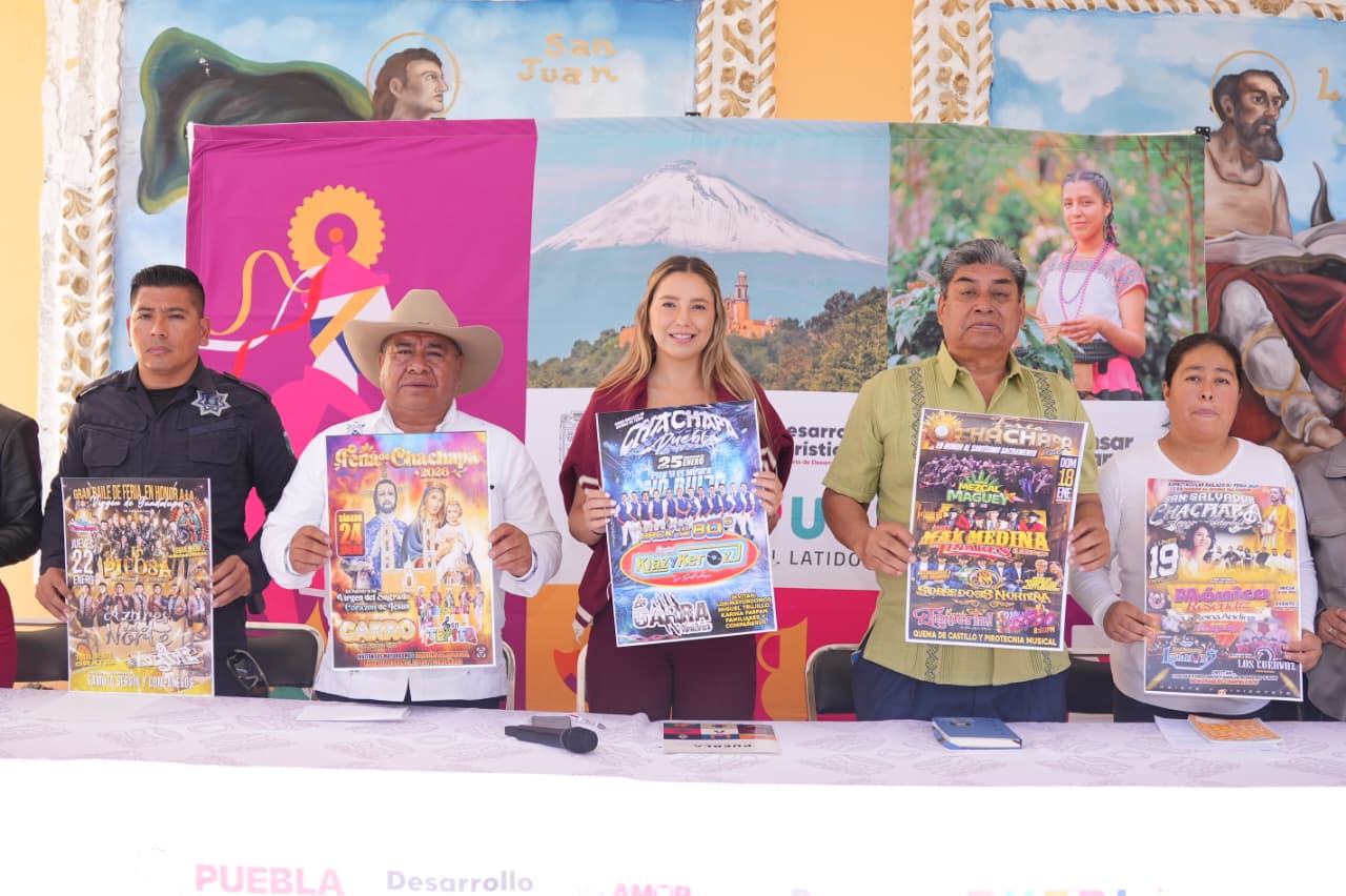 AMOZOC, Pue.- Con el objetivo de fortalecer el turismo comunitario, como lo instruyó el gobernador Alejandro Armenta, la secretaria de Desarrollo Turístico del Estado de Puebla, Carla López-Malo Villalón, anunció en conjunto con autoridades municipales y auxiliares la realización de la Feria Patronal de San Salvador Chachapa 2026, la cual se llevará a cabo del 18 al 25 de enero.