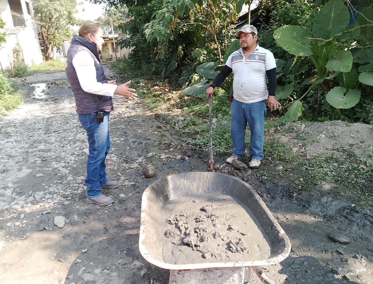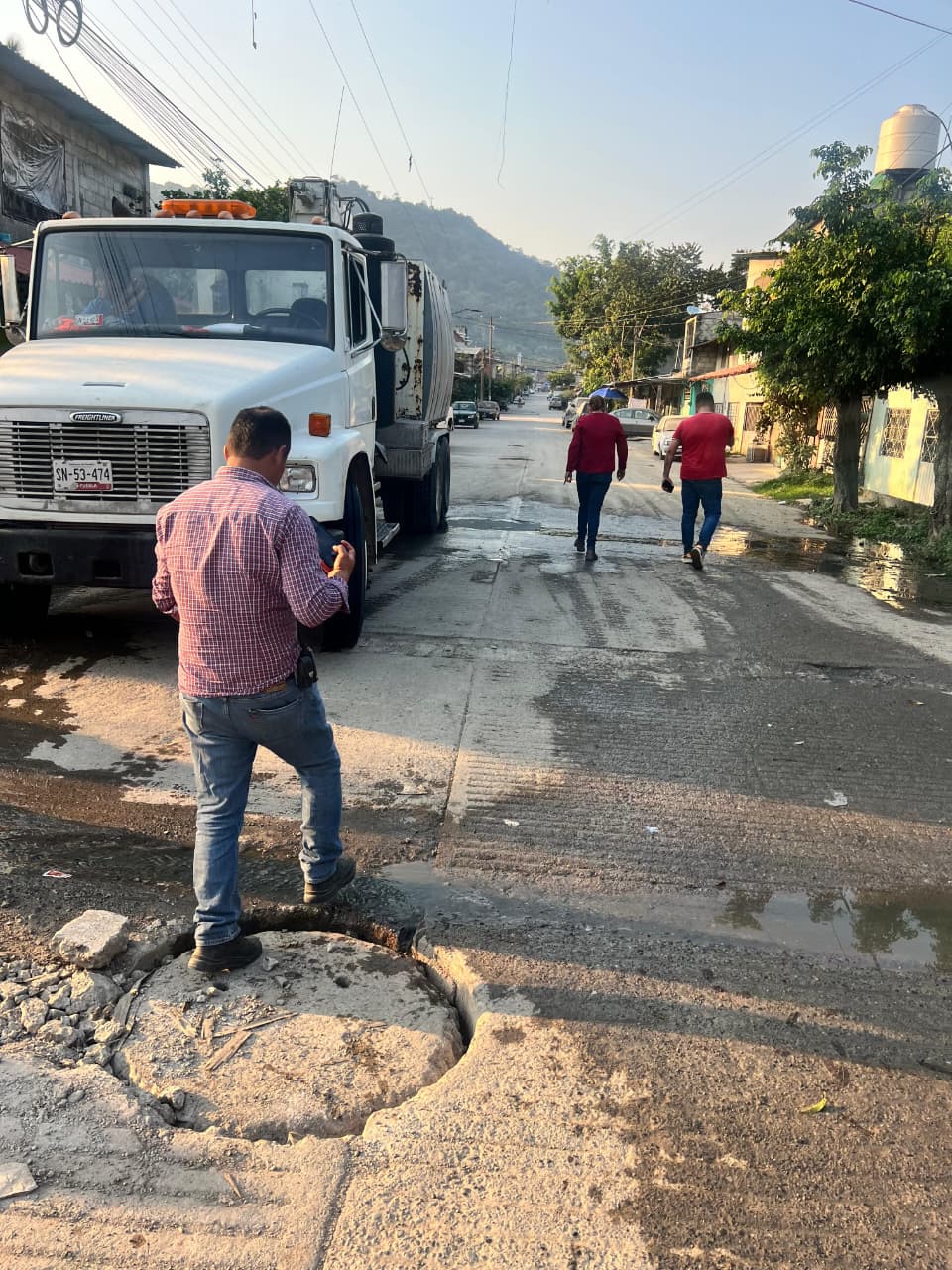 Posteriormente, se supervisó la calle Gilberto Camacho, en la junta auxiliar del mismo nombre, la cual presenta deterioro severo y requiere intervención inmediata. En la zona se elaboraron reportes técnicos para su pronta atención.