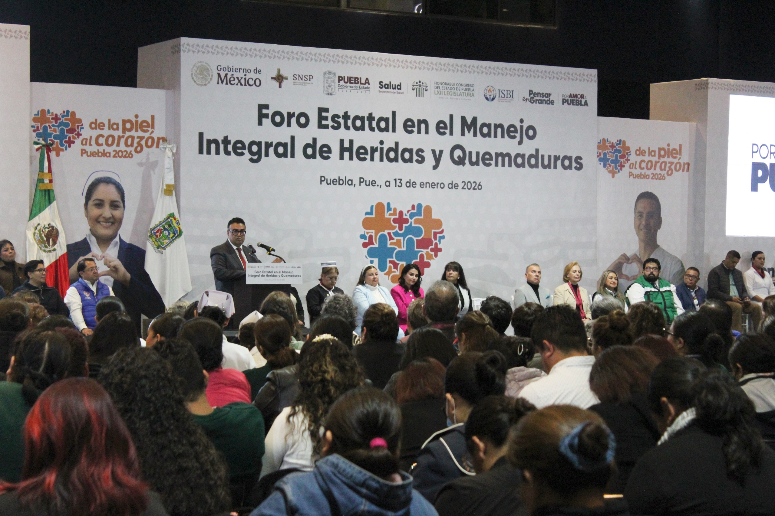 CIUDAD DE PUEBLA, Pue.- Con el objetivo de fortalecer la formación y la atención clínica, el Gobierno de Puebla que encabeza Alejandro Armenta, a través de la Secretaría de Salud, clausuró el Foro Estatal en el Manejo Integral de Heridas y Quemaduras denominado “De la Piel al Corazón”, el cual se desarrolló en el Centro de Convenciones.