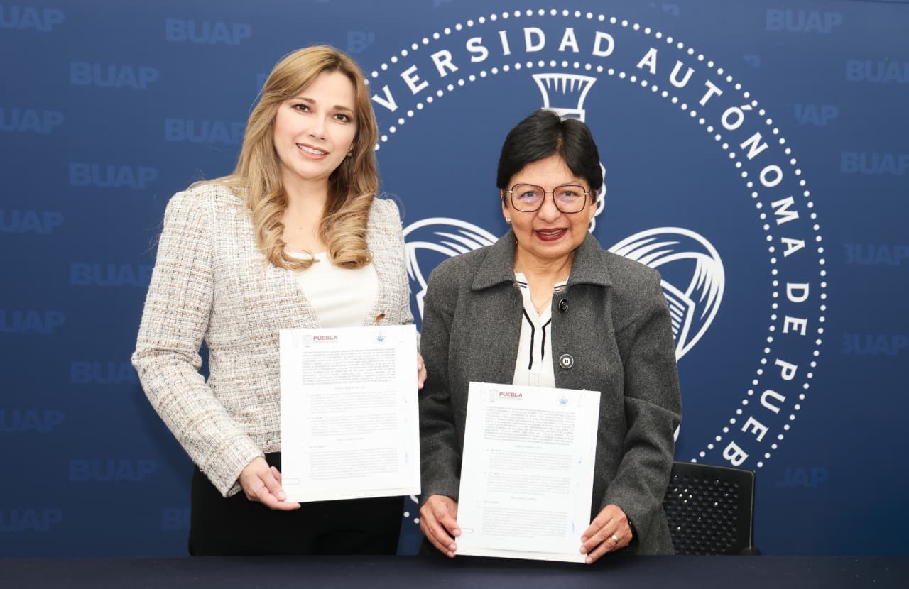 CIUDAD DE PUEBLA, Pue.– El Sistema Estatal para el Desarrollo Integral de la Familia (SEDIF) y la Benemérita Universidad Autónoma de Puebla (BUAP) firmaron un convenio de colaboración que permitirá a las hijas e hijos de estudiantes universitarios acceder de manera directa a los Centros de Asistencia Infantil Comunitarios (CAIC), como una medida que impulsa la permanencia escolar y el bienestar familiar.