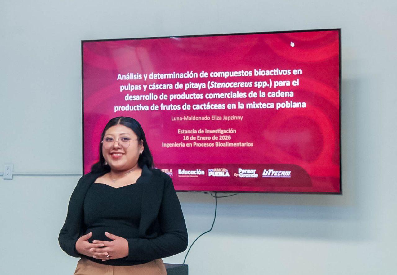 TECAMACHALCO, Pue.– La Universidad Tecnológica de Tecamachalco (UTTECAM) presentó ante la Subsecretaría de Tecnología, Innovación y Vinculación Sectorial de la SECIHTI Puebla, el proyecto “Análisis y determinación de compuestos bioactivos en pulpas y cáscara de pitaya (Stenocereus spp.) para el desarrollo de productos comerciales de la cadena productiva de frutos de cactáceas en la Mixteca poblana”, como parte de su estrategia institucional de transferencia de tecnología y saber científico.