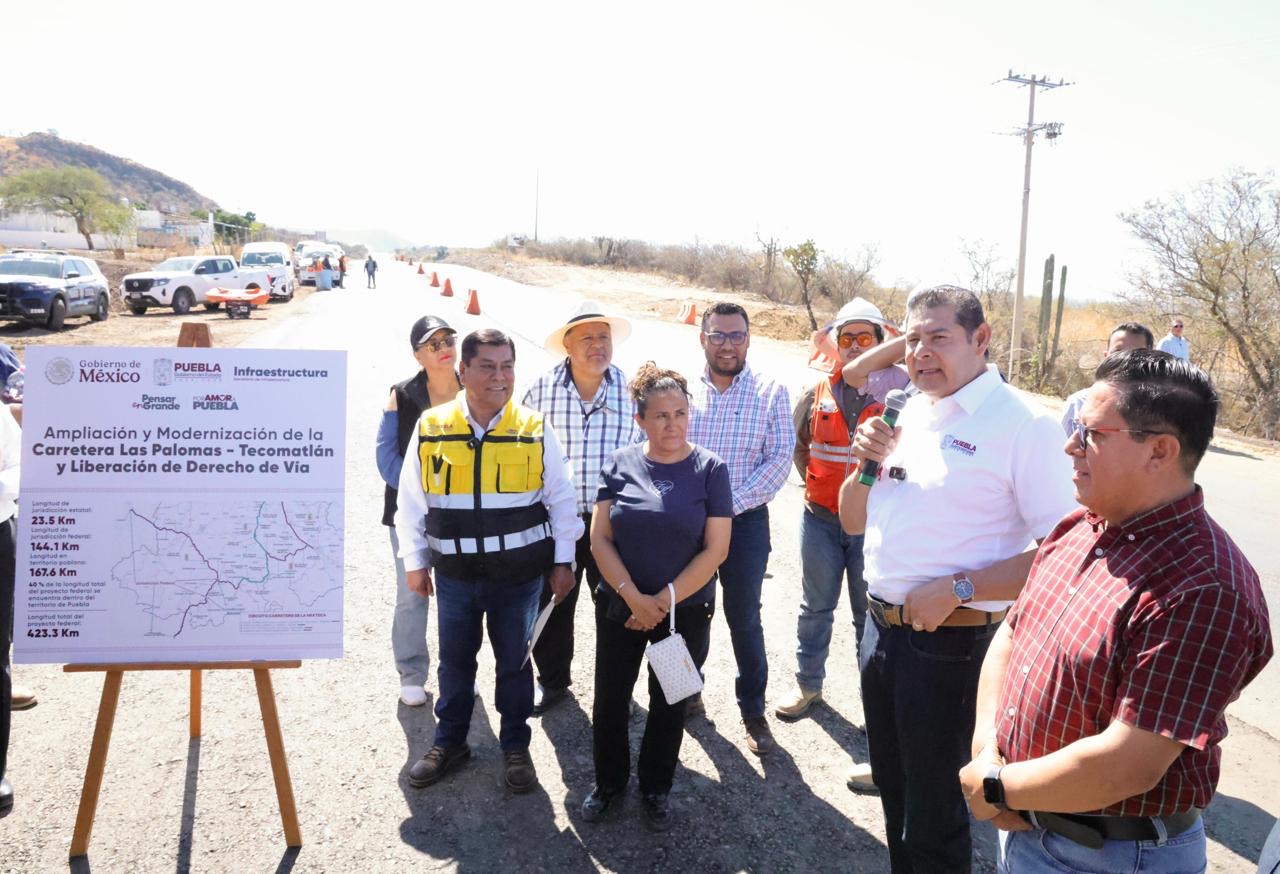 AHUEHETITLA, Pue.- El gobernador de Puebla, Alejandro Armenta supervisó los avances en la pavimentación de la carretera Las Palomas–Tecomatlán, una obra estratégica del Gobierno Federal que encabeza la presidenta Claudia Sheinbaum, a través de la Secretaría de Infraestructura, Comunicaciones y Transportes.