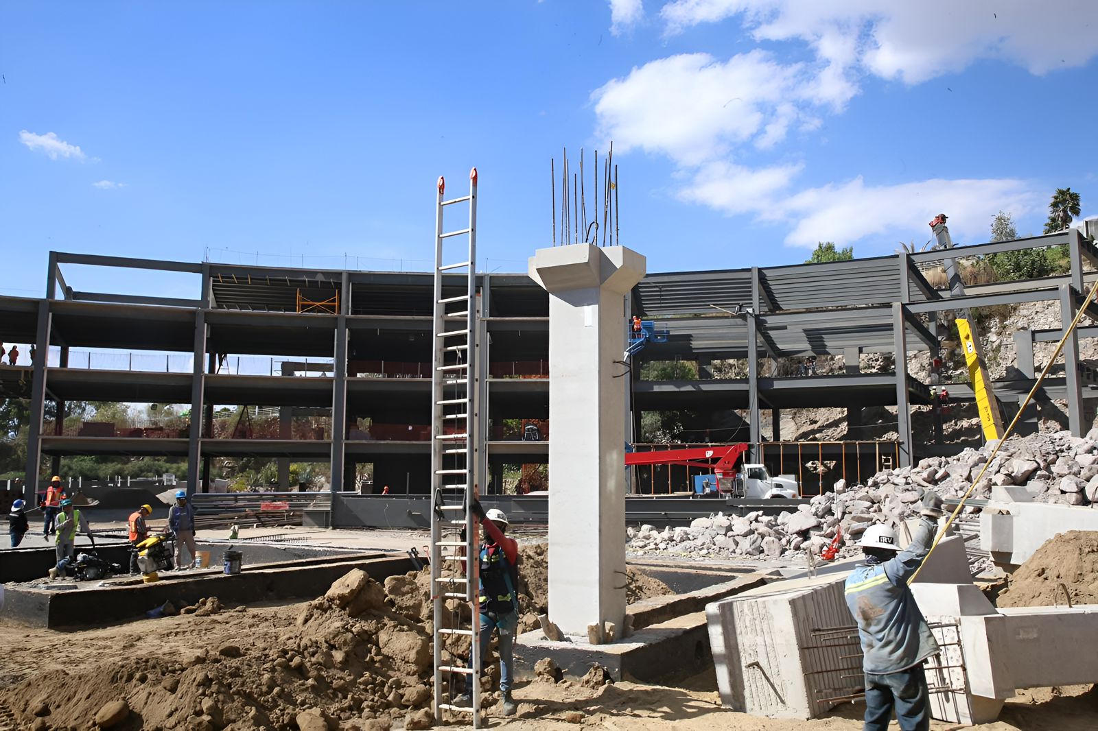 El supervisor de obra, Ángel Oliver, explicó que el complejo cumple con la normatividad vigente y avanza en áreas clave como aulas, alberca semiolímpica, auditorio y residencias estudiantiles, con labores de construcción de lunes a sábado y la participación diaria de hasta 350 trabajadores, tanto locales como foráneos.