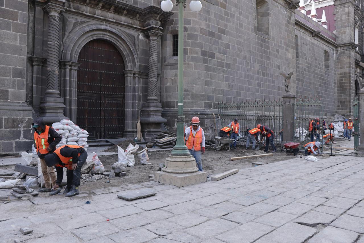 CIUDAD DE PUEBLA, Pue. - Con el objetivo de preservar inmuebles históricos que son joyas arquitectónicas, el Gobierno del Estado rehabilita 5 mil 571 metros cuadrados en el atrio de la Catedral Basílica de Nuestra Señora de la Inmaculada Concepción en el Centro Histórico de Puebla, a fin de hacer de este espacio un destino seguro, incluyente y atractivo para turistas y habitantes.
