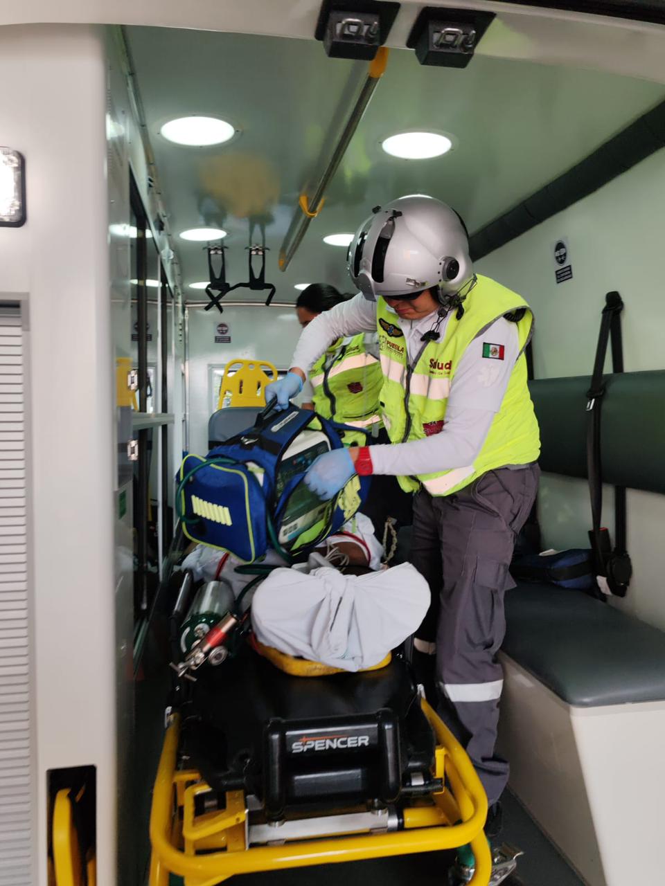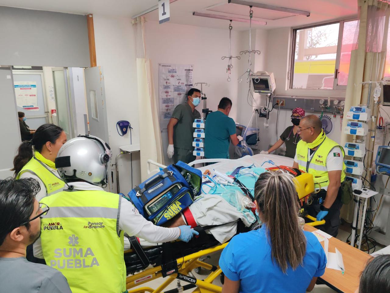 Debido a la gravedad de su condición, se realizó su traslado al Hospital Regional ISSSTE de Puebla mediante el equipo del Sistema de Urgencias Médicas Avanzadas (SUMA), lo que permitirá que reciba atención especializada en terapia intensiva y seguimiento médico de alta complejidad.