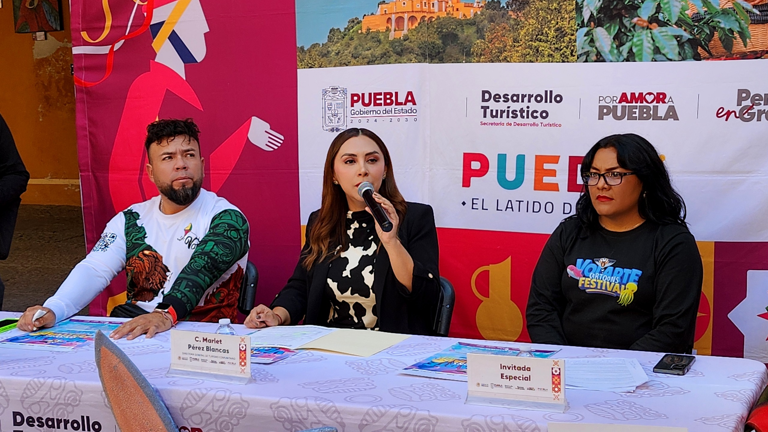 CIUDAD DE PUEBLA, Pue.- Del 12 al 15 de febrero próximo, se llevará a cabo el Festival Volarte Cartoons en la pirámide de Cholula, donde se prevé la llegada de 90 mil personas y una derrama económica de 12 millones de pesos, informó la directora general de Turismo Comunitario, Marlet Pérez Blancas, en representación de la secretaria de Desarrollo Turístico del estado de Puebla, Carla López-Malo Villalón.