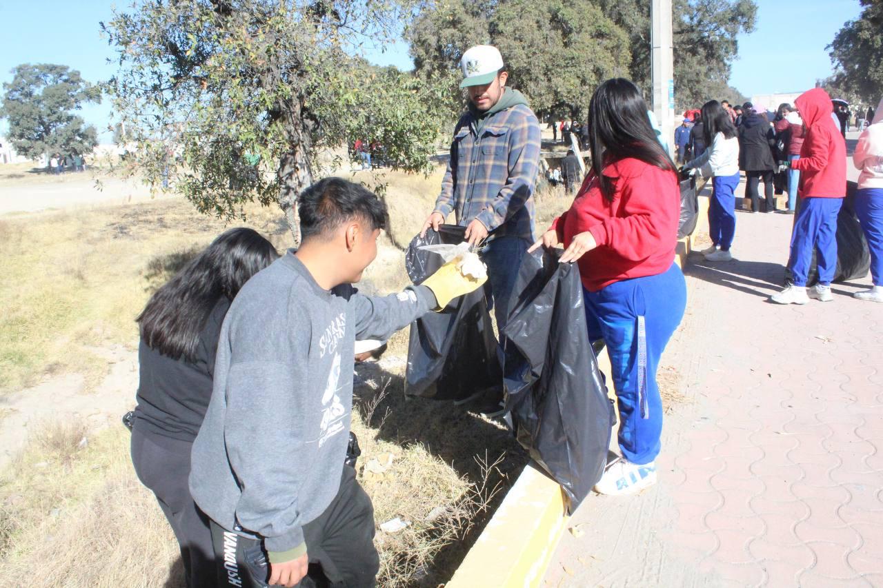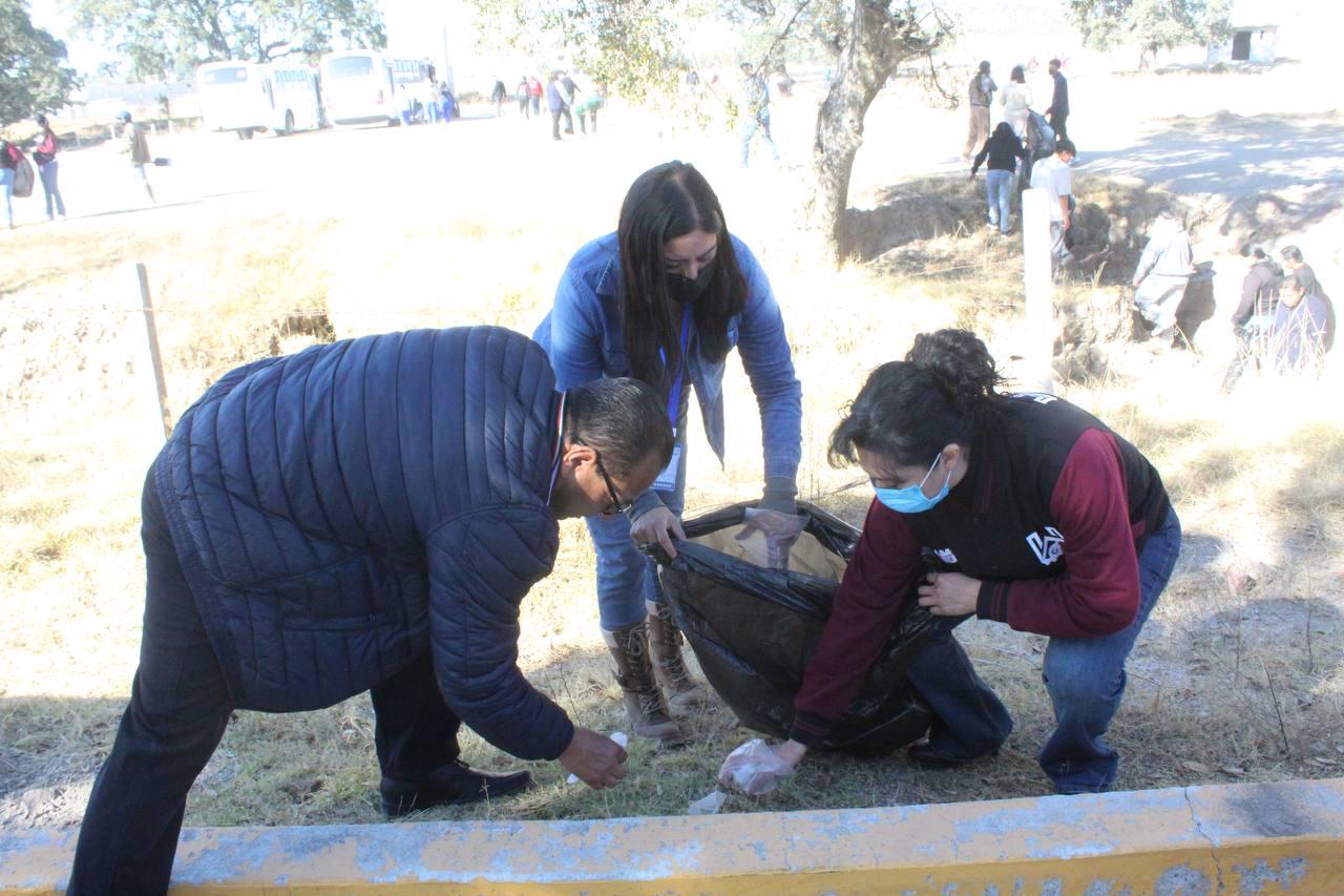 AMOZOC, Pue.– Con el objetivo de fortalecer la participación comunitaria, el sentido de pertenencia y el compromiso social, estudiantes y personal administrativo de la Universidad Politécnica de Amozoc realizaron una faena de limpieza en el acceso principal a esta casa de estudios.