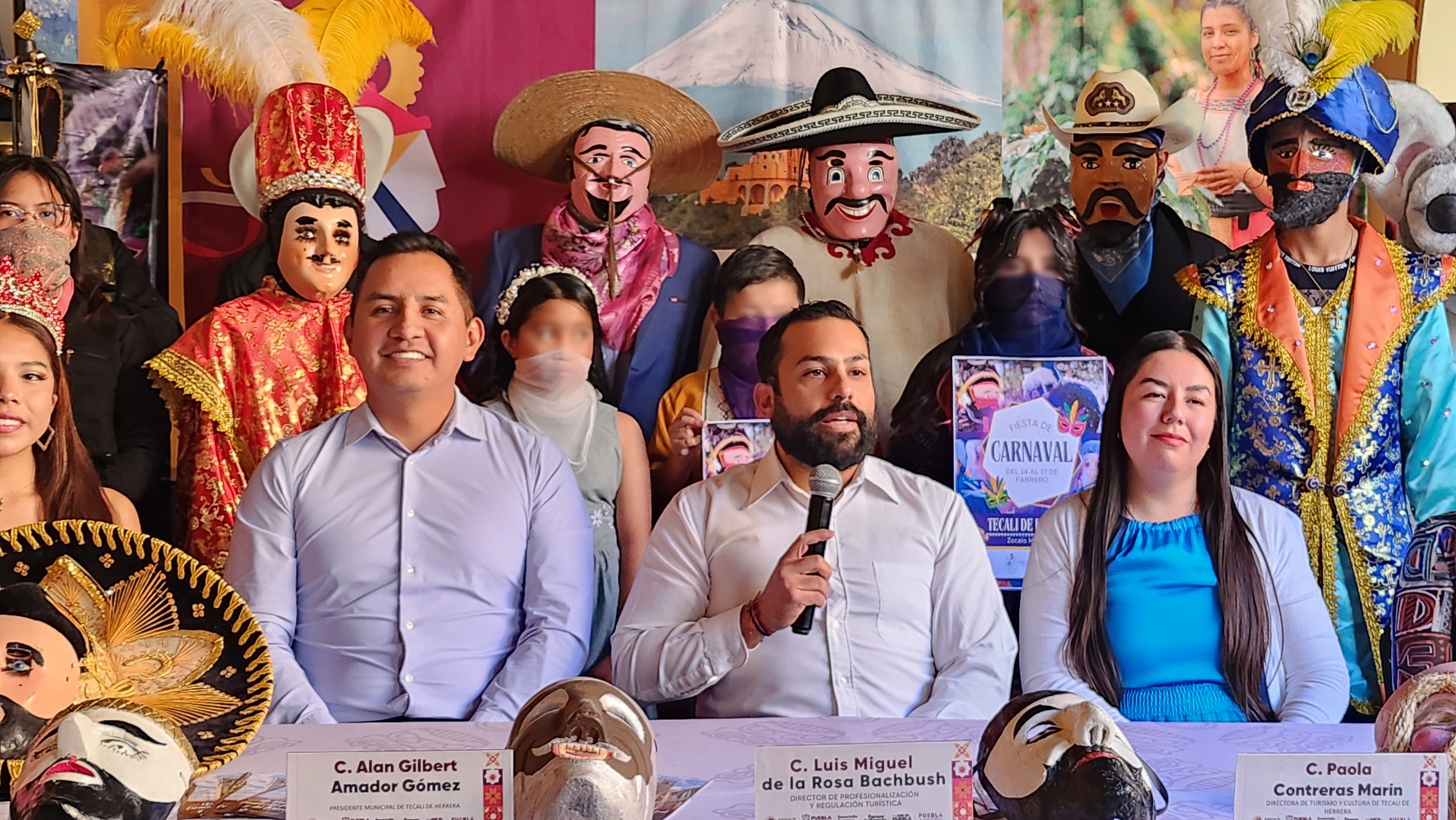 CIUDAD DE PUEBLA, Pue.- Con el objetivo de promover el Carnaval de Tecali de Herrera, la Secretaría de Desarrollo Turístico del Estado de Puebla y la autoridad municipal, presentaron esta festividad que se llevará a cabo del 14 al 17 de febrero próximo, en la que se espera la asistencia de al menos 10 mil personas.