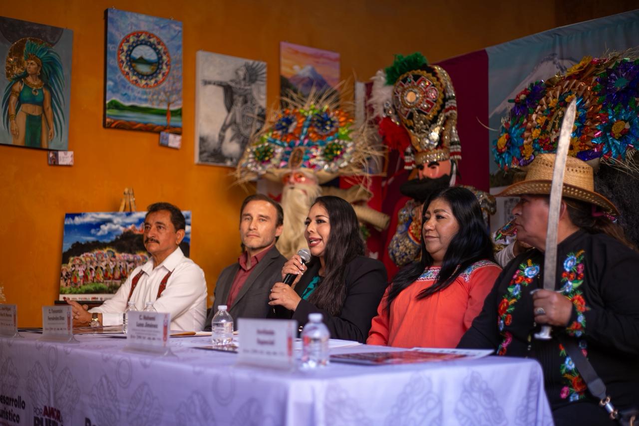 CIUDAD DE PUEBLA, Pue.- Con música, baile y tradición, la Secretaría de Desarrollo Turístico del Estado de Puebla, en conjunto con la autoridad municipal, presentó el Carnaval de San Pedro Cholula. Dicho evento se llevará a cabo el 21 y 22 de febrero próximo, con la participación de 8 mil huehues y danzantes.