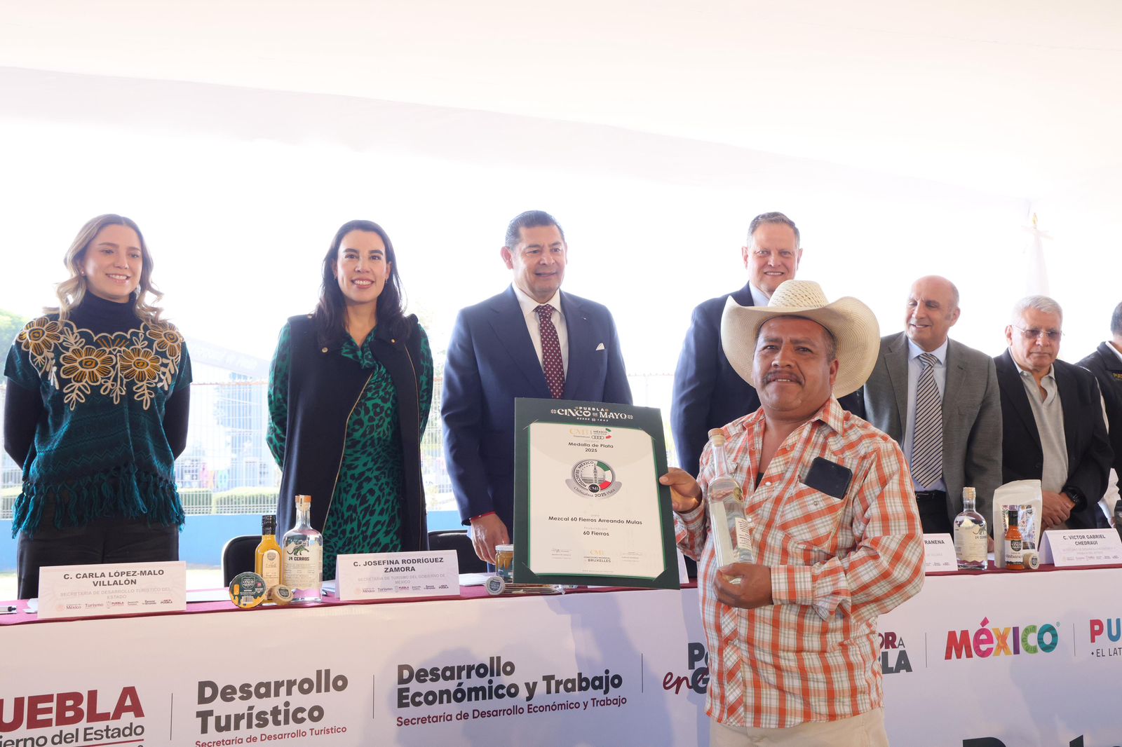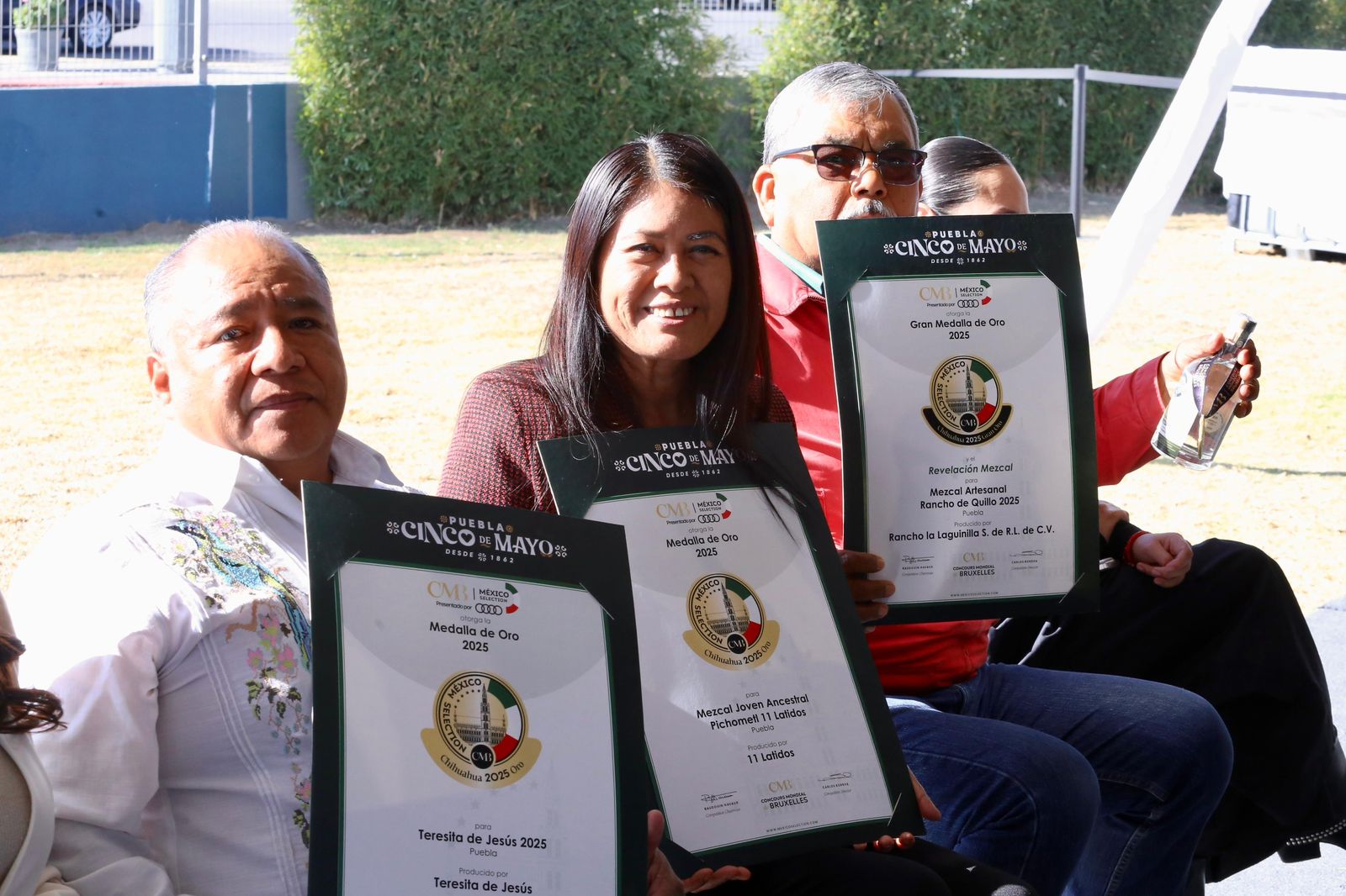 Durante la ceremonia se distinguió con medalla de plata a “60 Fierros”. Se otorgaron medallas de oro a “11 Latidos”, “Teresita de Jesús” y al mezcal artesanal, ensamble de Pascual Trujillo y Pedro Trujillo Flores. Además, se concedió la Gran Medalla de Oro y el reconocimiento como Mezcal Revelación 2025 a “Rancho de Quillo”. Estos logros fortalecen la cadena productiva del mezcal y abren nuevas oportunidades comerciales para las familias poblanas.