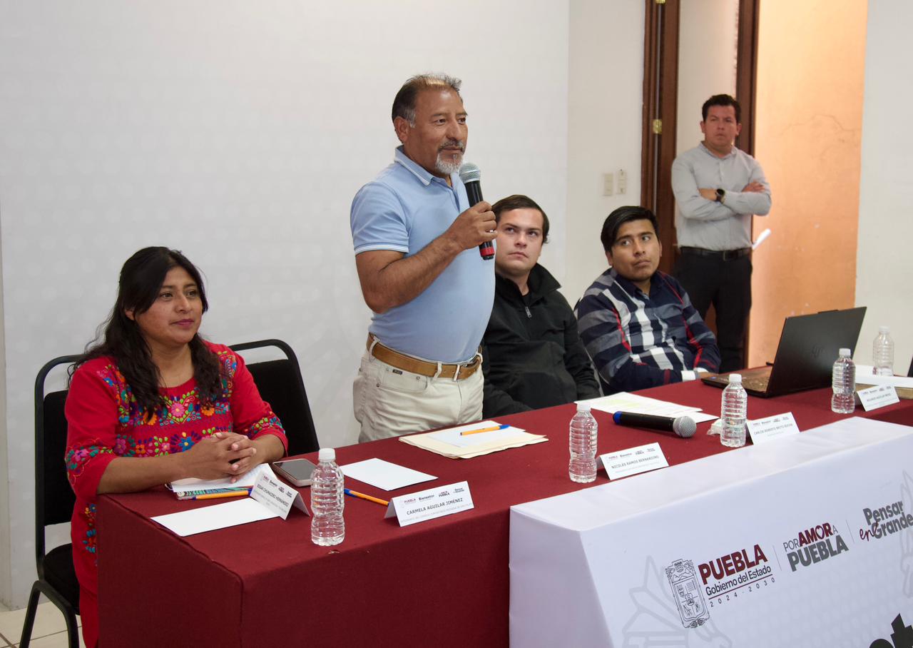 CIUDAD DE PUEBLA, Pue.-27 autoridades tradicionales del pueblo Ngiwa, entablaron una reunión de trabajo en la Secretaría de Bienestar con el propósito de explicar la operación del Programa de Obra Comunitaria y resolver dudas sobre su aplicación en sus municipios: Caltepec, Coyotepec, Tepanco de López, Tepexi de Rodríguez, Tlacotepec de Benito Juárez y Zapotitlán Salinas,