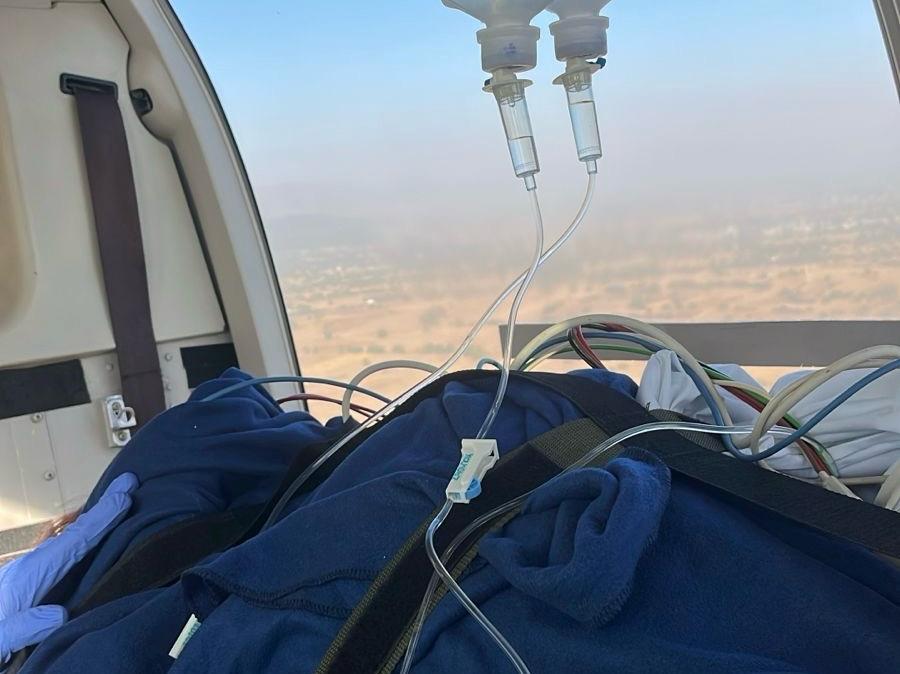 El operativo fue coordinado por el Sistema de Urgencias Médicas Avanzadas (SUMA), a través de una ambulancia aérea, que permitió llegar al nosocomio en solo 15 minutos, tiempo durante el cual permaneció bajo vigilancia, se logró su estabilidad y se disminuyeron los riesgos.