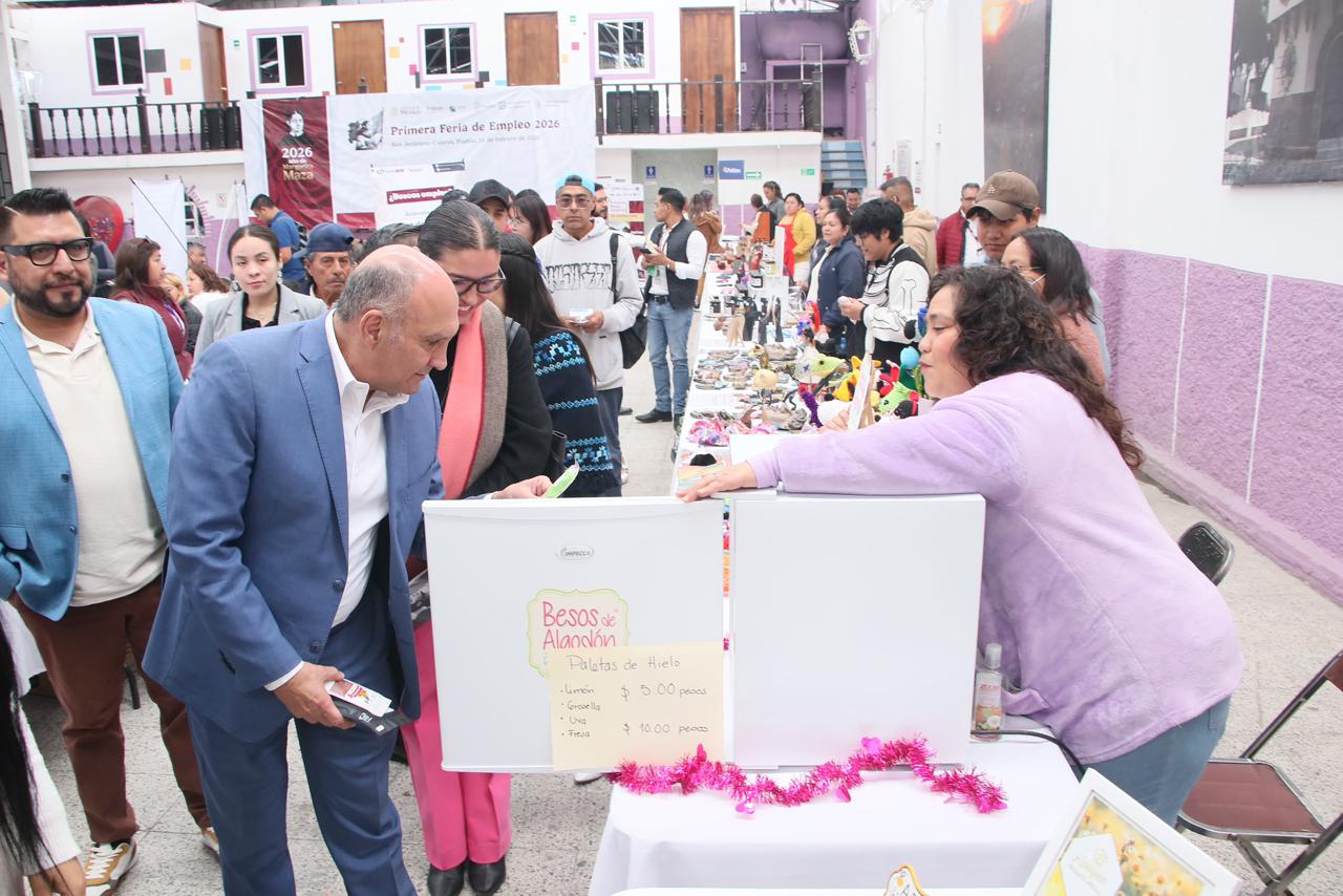 CIUDAD DE PUEBLA, Pue.– Con el propósito de acercar oportunidades reales a cada región del estado, se impulsó la generación de empleo digno mediante la realización de la Primera Feria de Empleo 2026, efectuada en la Plaza de San Jerónimo Caleras, como parte de una política económica con sentido social, alineada a la estrategia nacional de la presidenta Claudia Sheinbaum, por el Gobierno del Estado que encabeza Alejandro Armenta Mier.