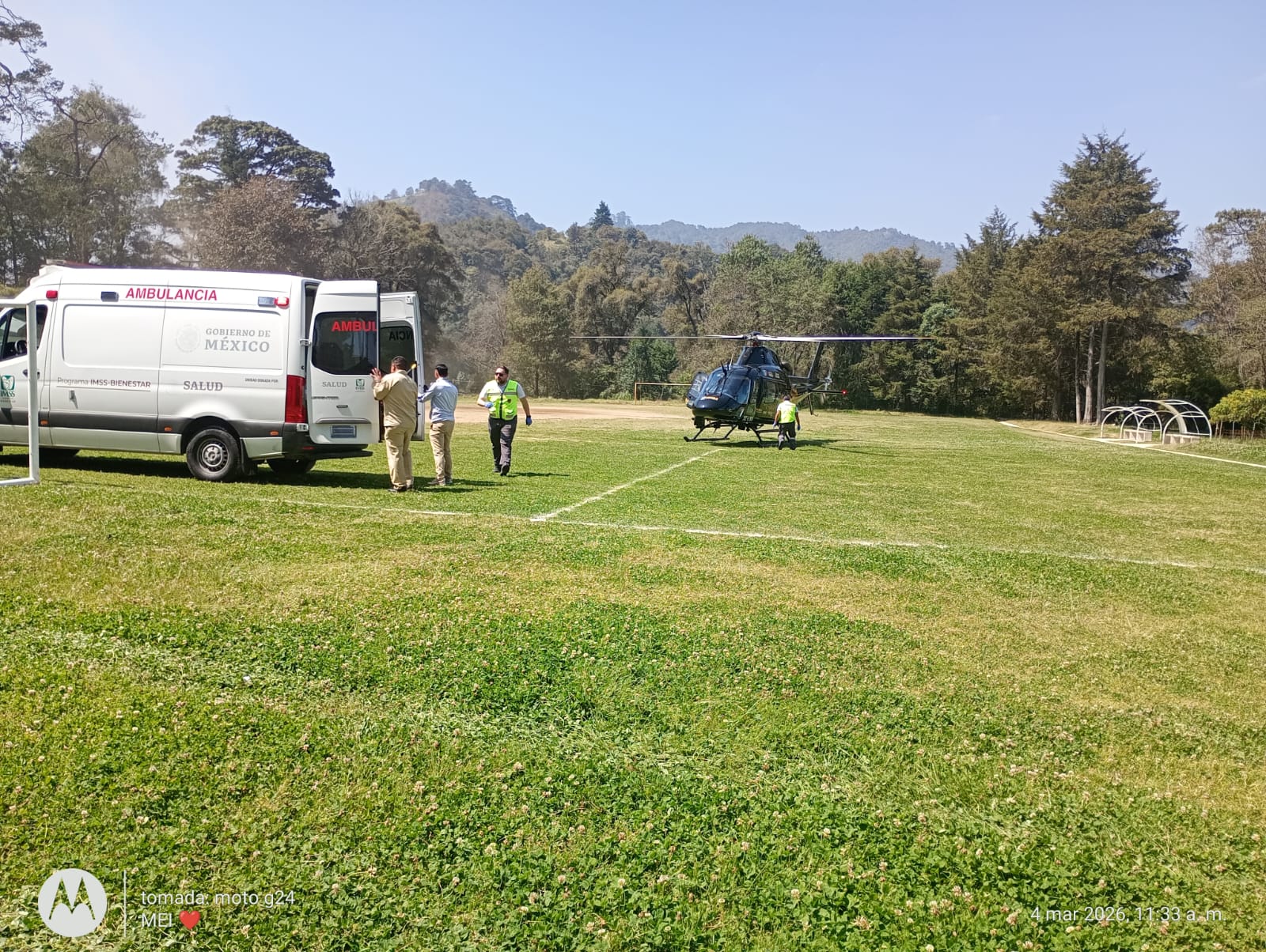 Ante la gravedad en el estado de salud del paciente, se autorizó su traslado aéreo, mismo que fue realizado por el equipo del Sistema de Urgencias Médicas Avanzadas (SUMA) desde el Hospital Rural de Zacapoaxtla al Hospital de Traumatología y Ortopedia IMSS-Bienestar de Puebla, donde continuará con su tratamiento.