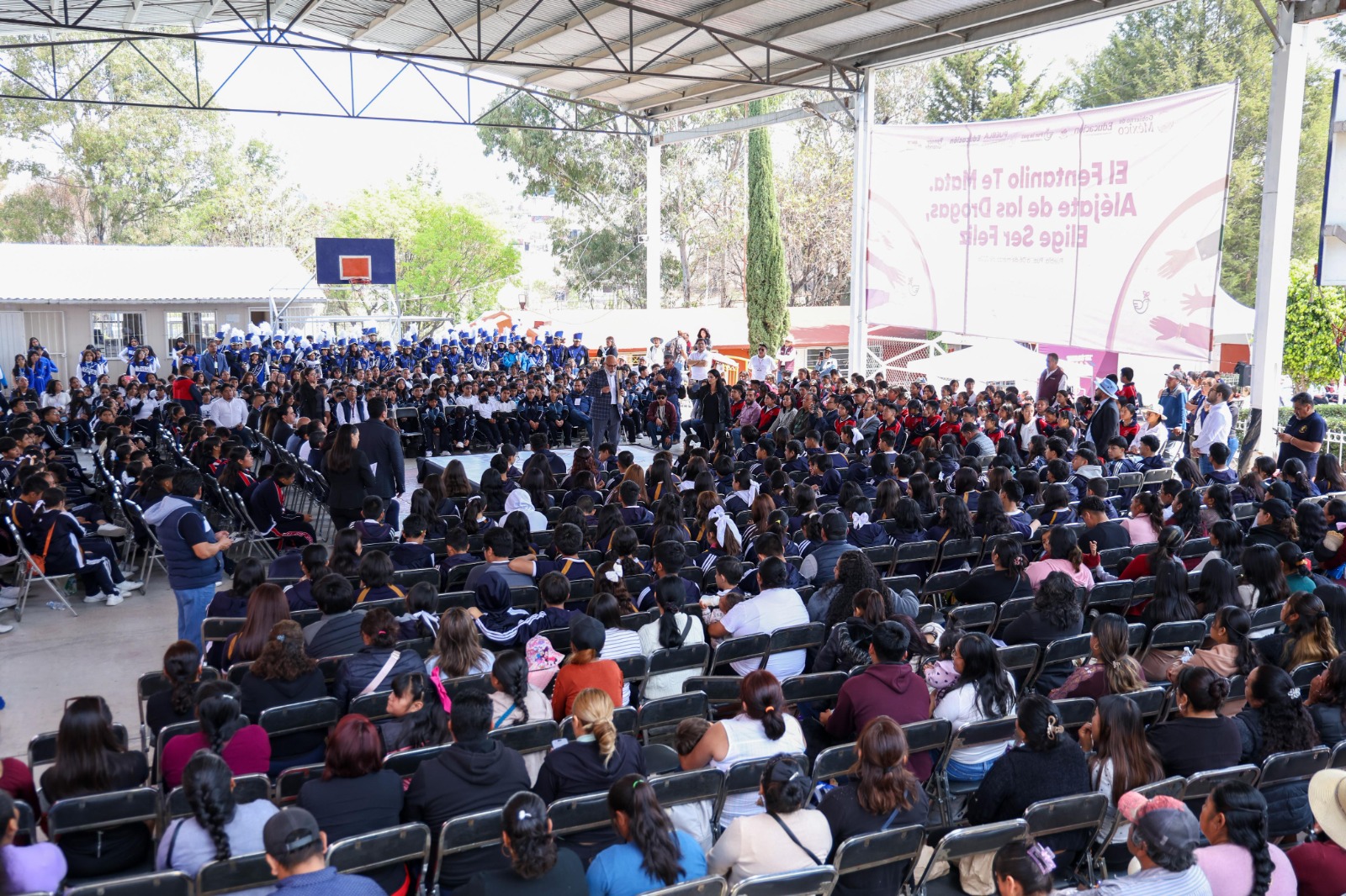 Durante esta actividad participaron 400 estudiantes, docentes y madres y padres de familia, quienes se integraron a diversas dinámicas educativas, deportivas y recreativas orientadas a prevenir el consumo de sustancias tóxicas y a fortalecer la convivencia sana dentro de la comunidad escolar.