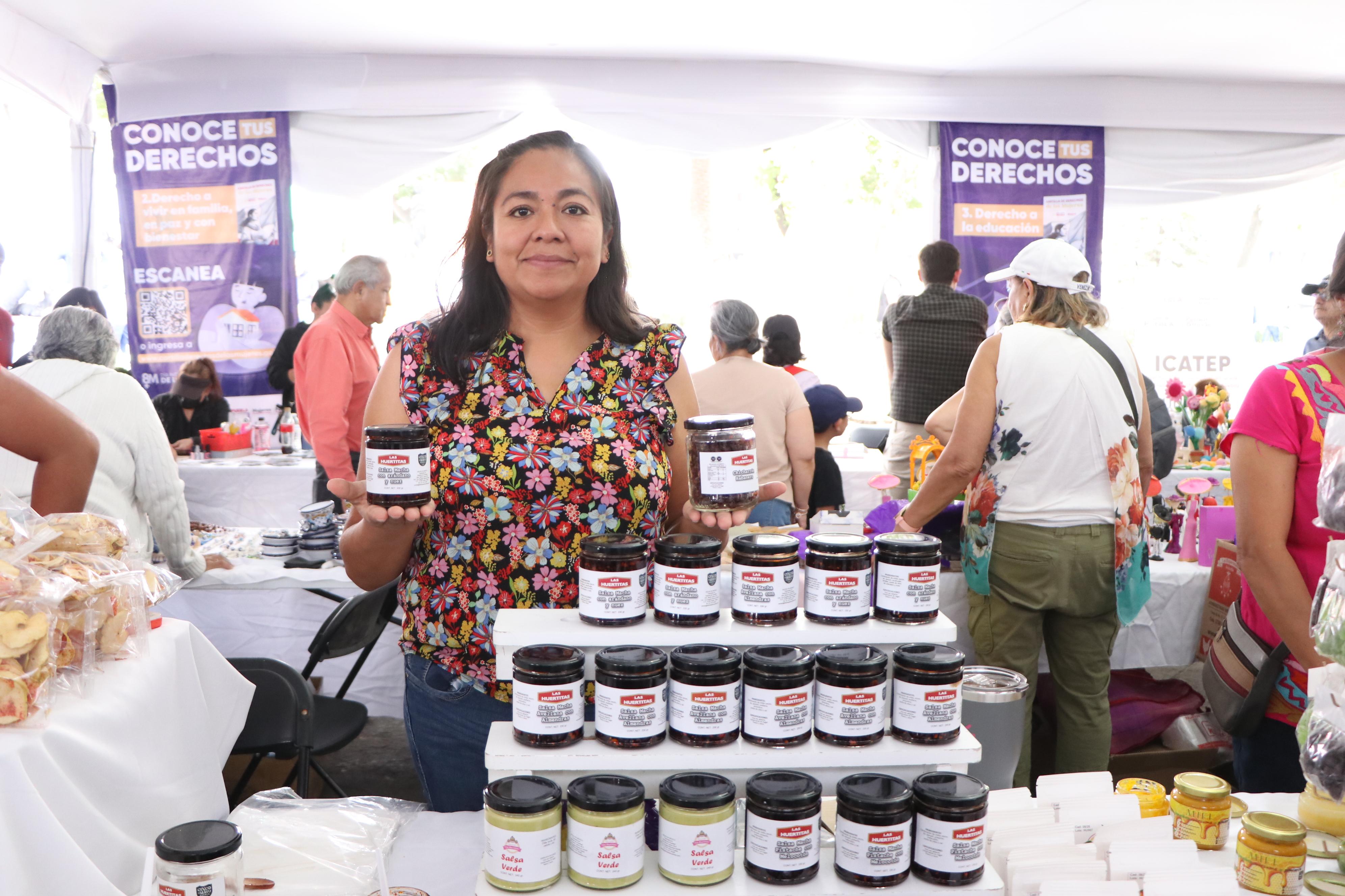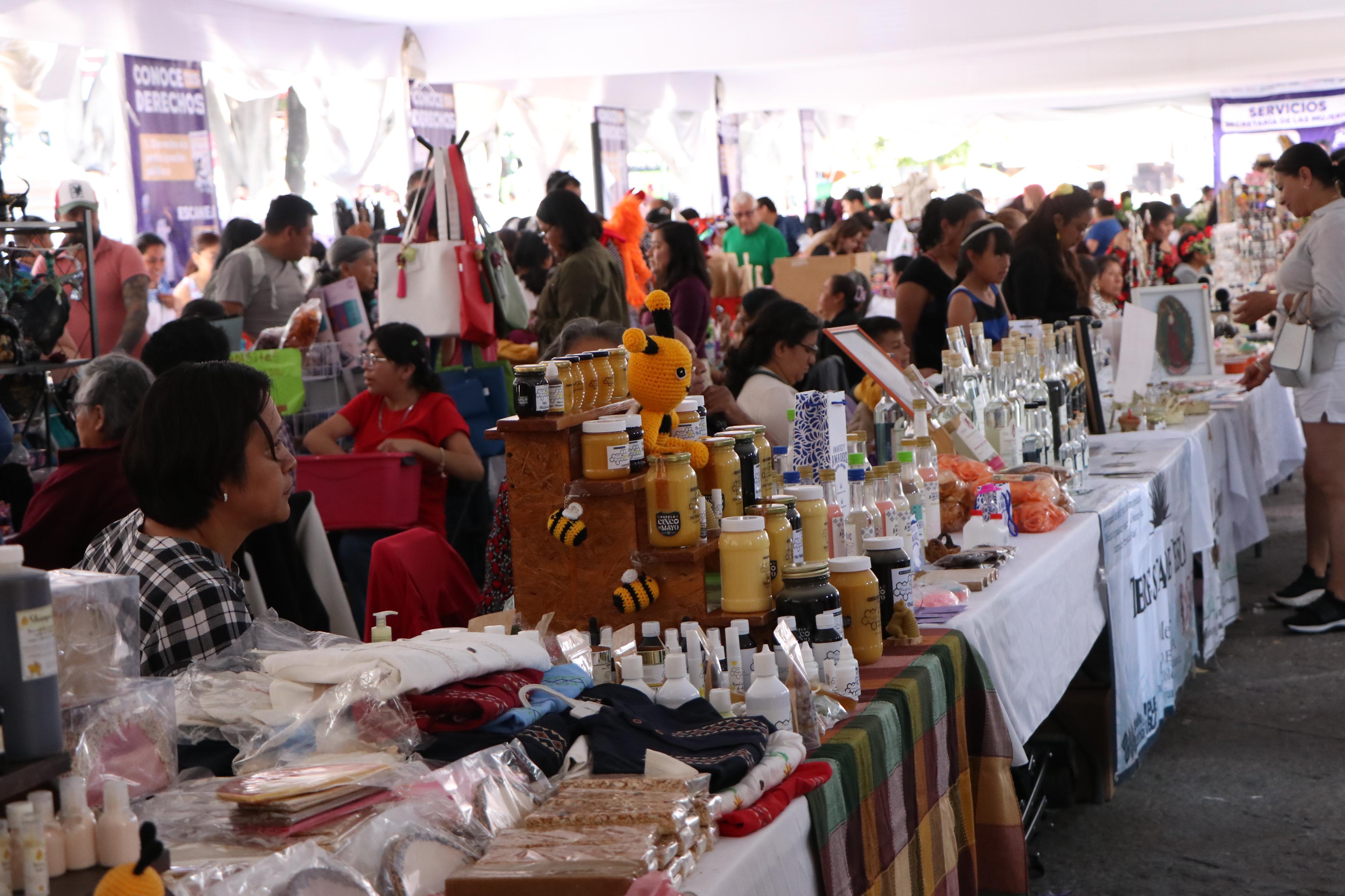 La expositora Beda Ofelia Guzmán Mora señaló que este tipo de encuentros amplían las oportunidades para las poblanas. “Estos espacios nos ayudan a vender nuestros productos, dar a conocer nuestra labor y demostrar que también contribuimos al sustento de nuestras familias”, comentó.