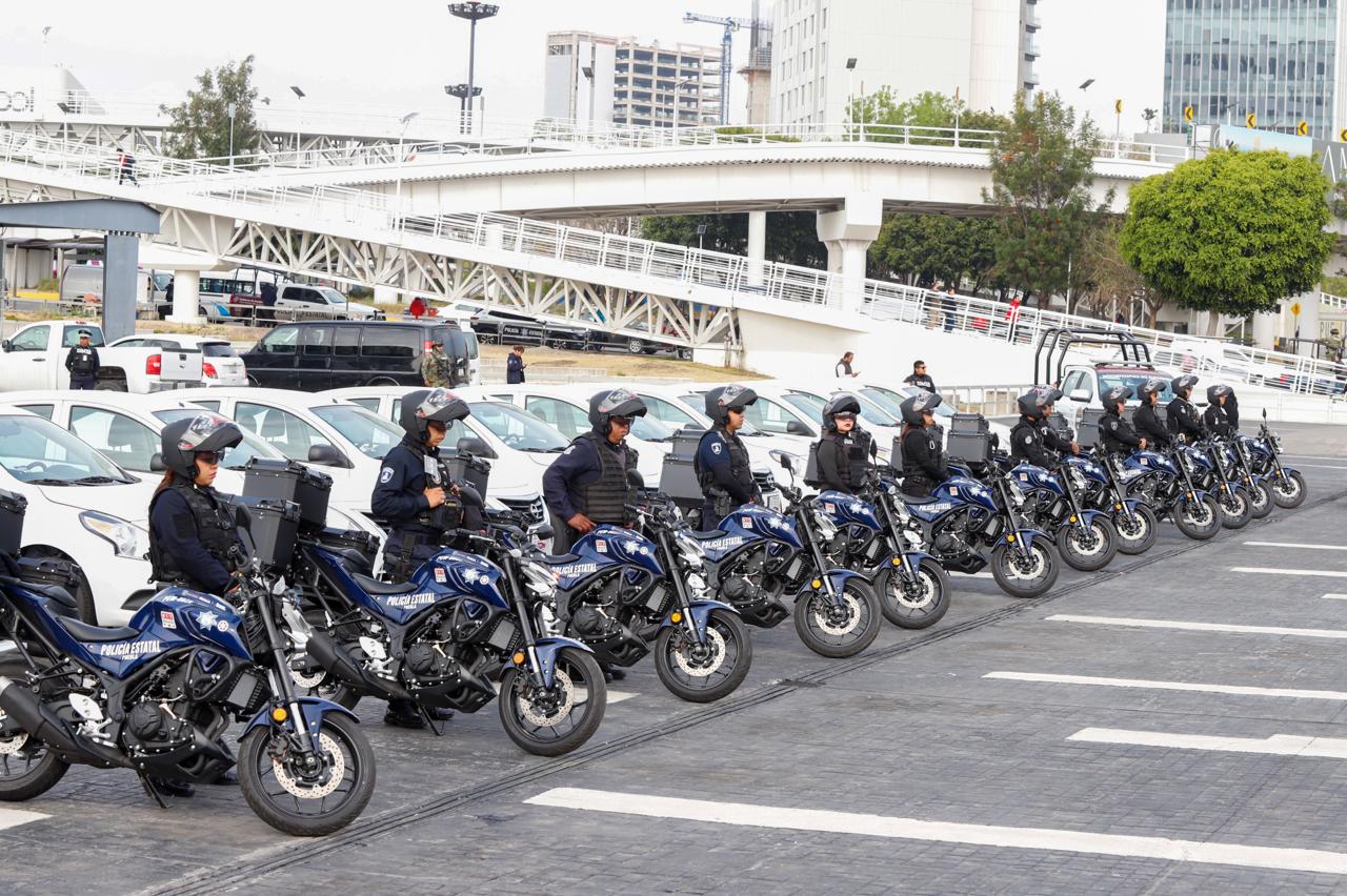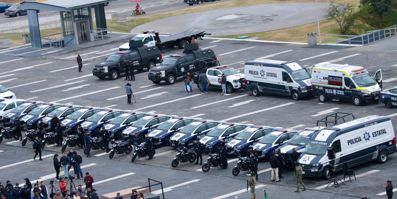 - El gobernador encabezó la entrega de 111 unidades, entre motocicletas, patrullas, ambulancias y helicópteros por un monto de 57 mdp.