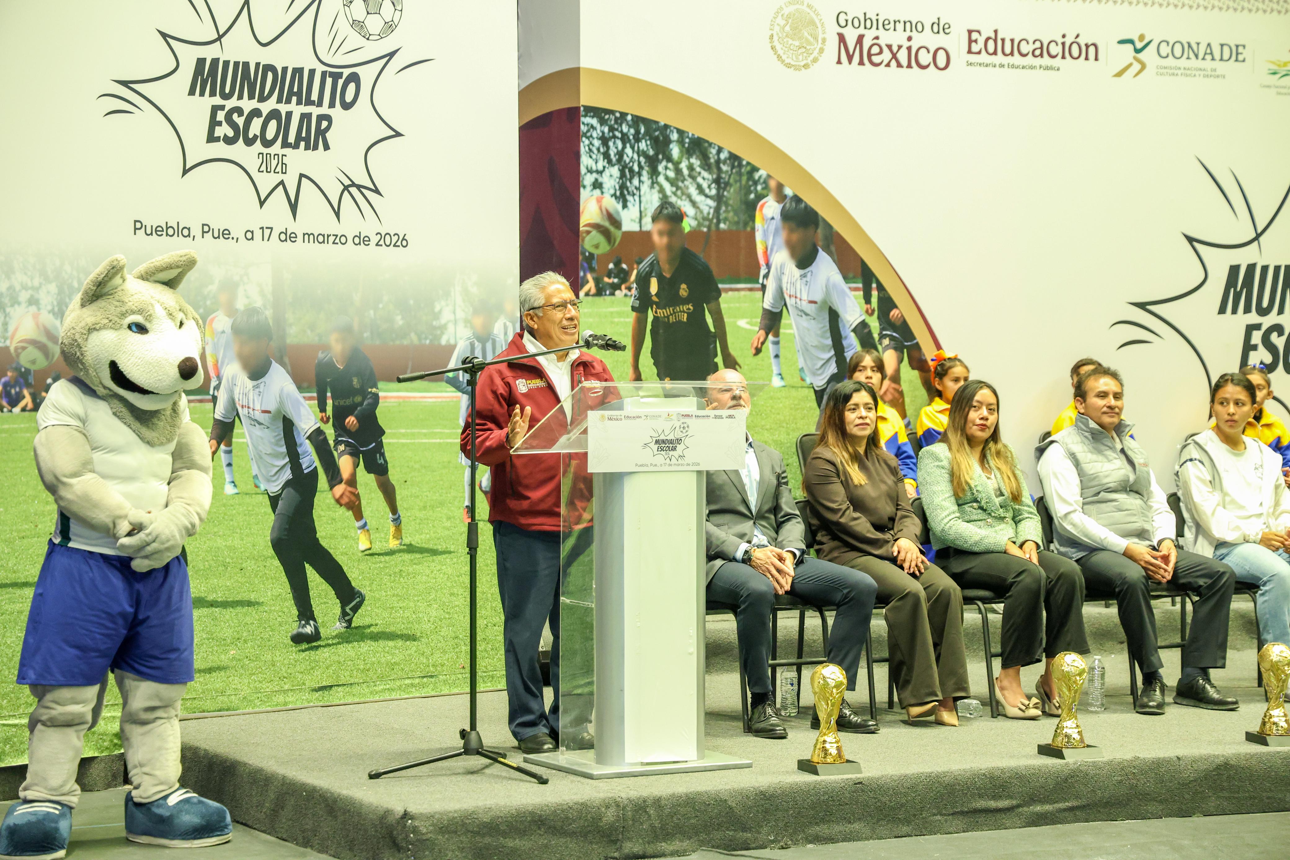 CIUDAD DE PUEBLA, Pue.- Con el propósito de fomentar el deporte, la inclusión y la formación integral de niñas, niños, adolescentes y jóvenes, el Gobierno del Estado, a través del titular de la Secretaría de Educación Pública de la entidad, Manuel Viveros Narciso inauguró el Mundialito 2026 en el que participarán 2 mil 500 estudiantes de educación básica, media superior y superior.