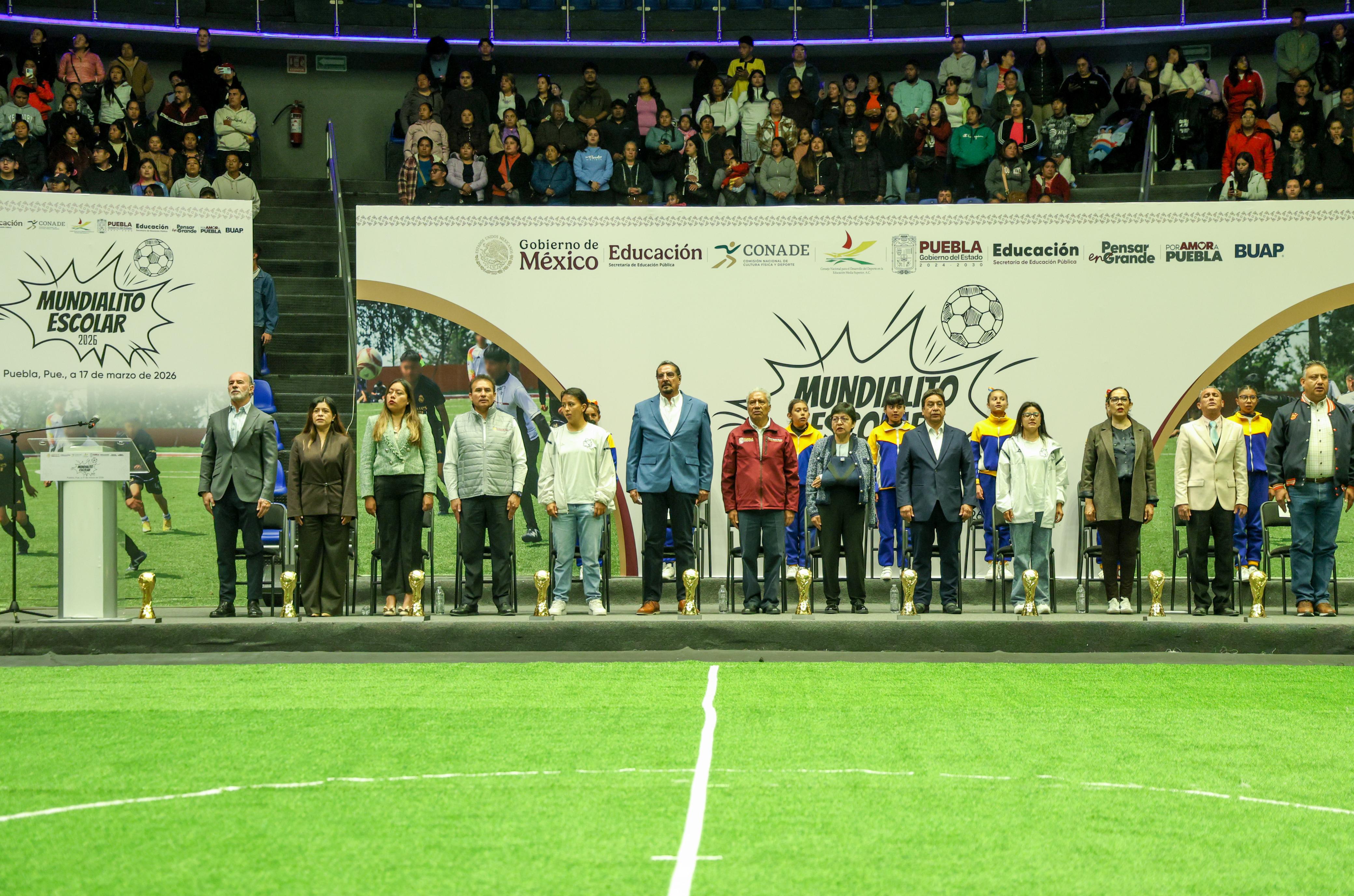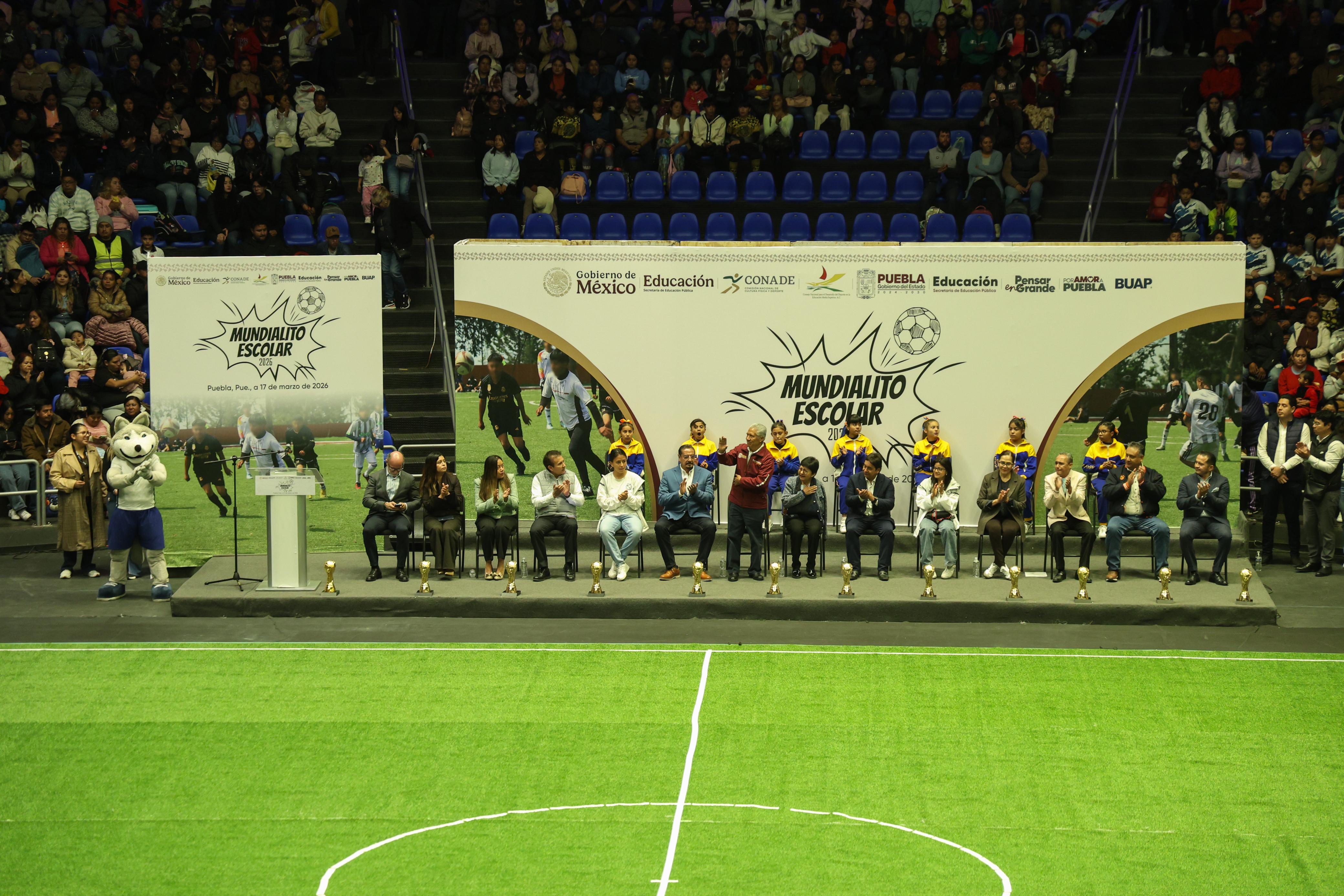 En la Arena de la Benemérita Universidad Autónoma de Puebla (BUAP) se reunieron autoridades educativas y estatales, incluida la rectora Lilia Cedillo Ramírez, para iniciar los torneos que se realizarán en distintas fechas: primaria del 17 al 20 de marzo y secundaria del 23 al 26 de marzo. Los encuentros escolares y comunitarios forman parte del “Mundial Social” rumbo a la Copa 2026, en su etapa estatal.