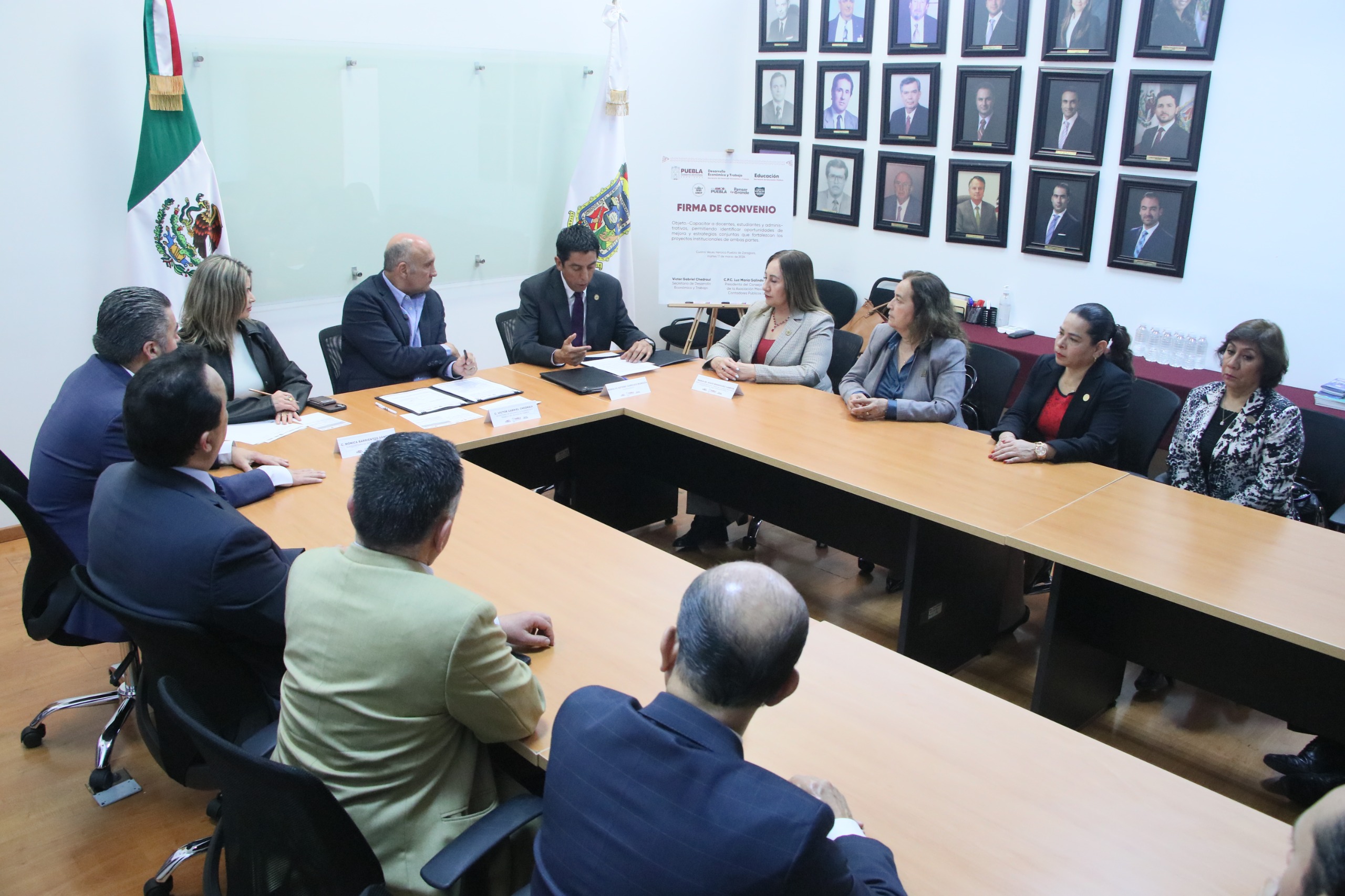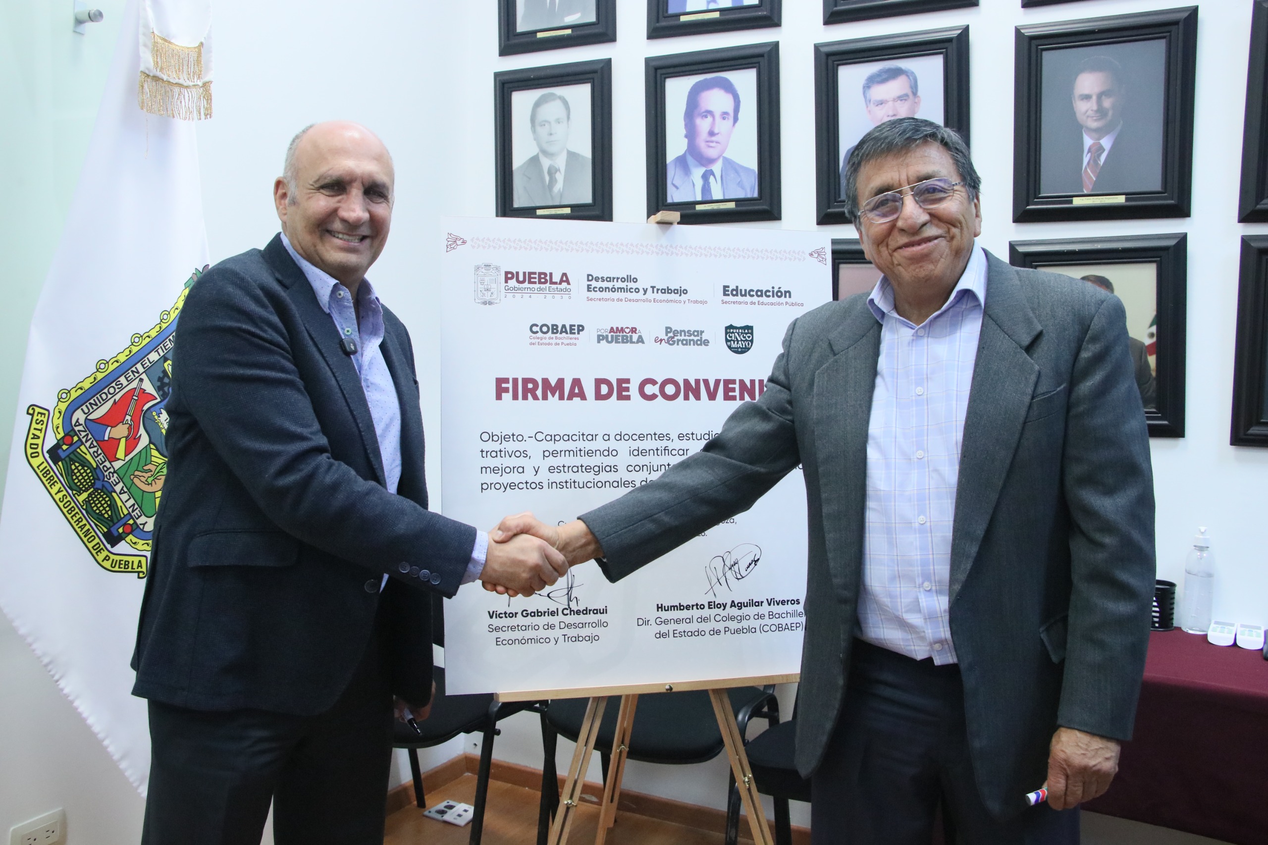 CIUDAD DE PUEBLA. Pue. - El gobierno estatal que encabeza el mandatario Alejandro Armenta Mier consolidó una agenda de colaboración con la firma de convenios entre la Secretaría de Desarrollo Económico y Trabajo y el Colegio de Bachilleres del Estado de Puebla (COBAEP), así como con la Asociación Mexicana de Contadores Públicos, Colegio Profesional en Puebla, con el objetivo de fortalecer la formación académica, la empleabilidad y la competitividad en la entidad.