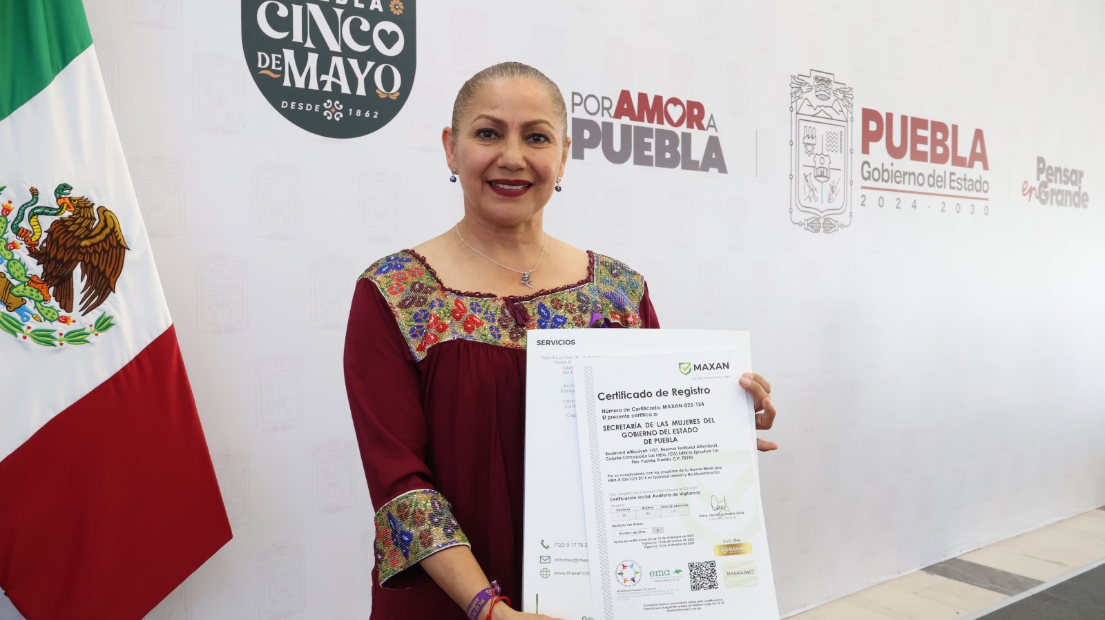 También se entregaron certificados de la Norma Mexicana NMX-R-025-SCFI-2015 en Igualdad Laboral y No Discriminación a entidades de la administración pública estatal que acreditaron su auditoría en 2025, en reconocimiento a su compromiso con espacios laborales incluyentes.