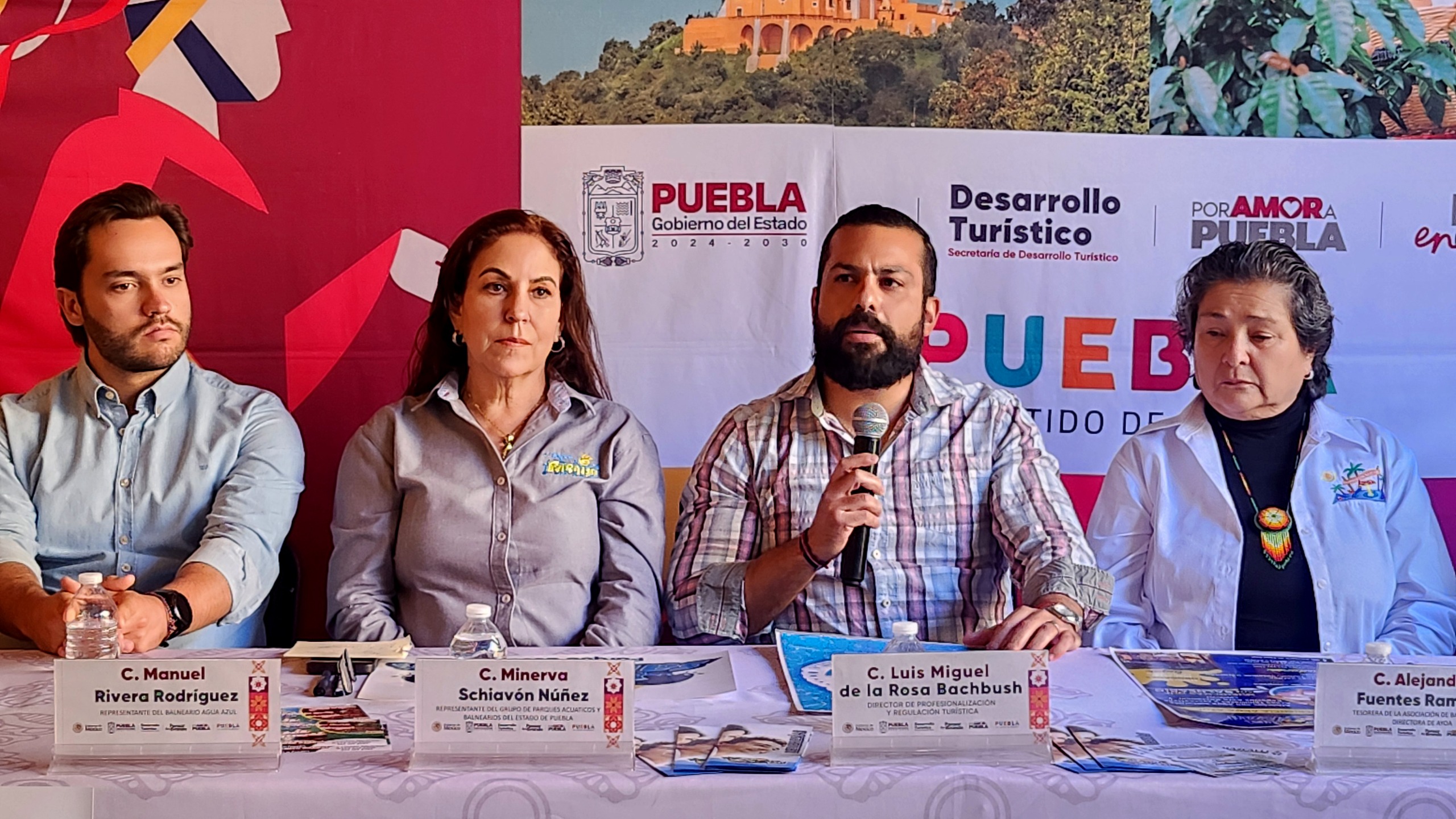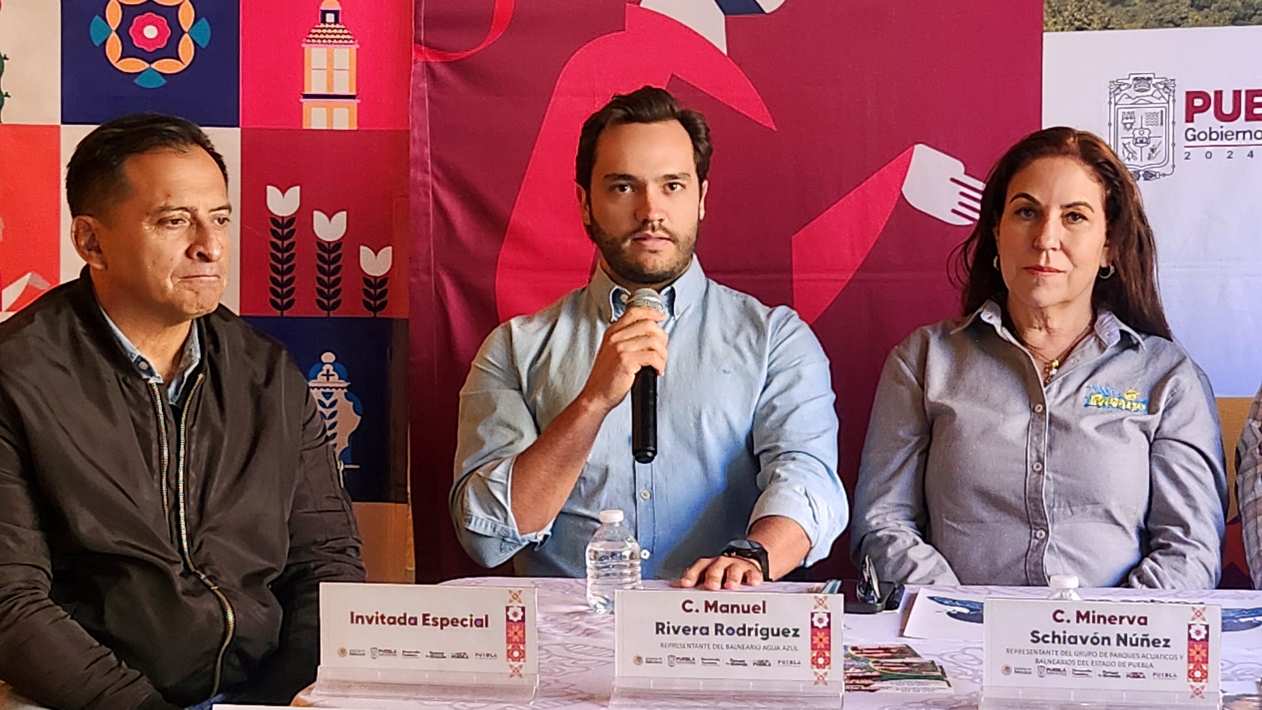 CIUDAD DE PUEBLA, Pue.- Con el fin de impulsar el turismo acuático en esta temporada vacacional de Semana Santa, la Secretaría de Desarrollo Turístico del Estado de Puebla y representantes de diversos balnearios, presentaron la oferta que brindan estos centros de recreación de Puebla, Atlixco, Quecholac, Chignahuapan, San Pedro y Santa Isabel Cholula, entre otros municipios.