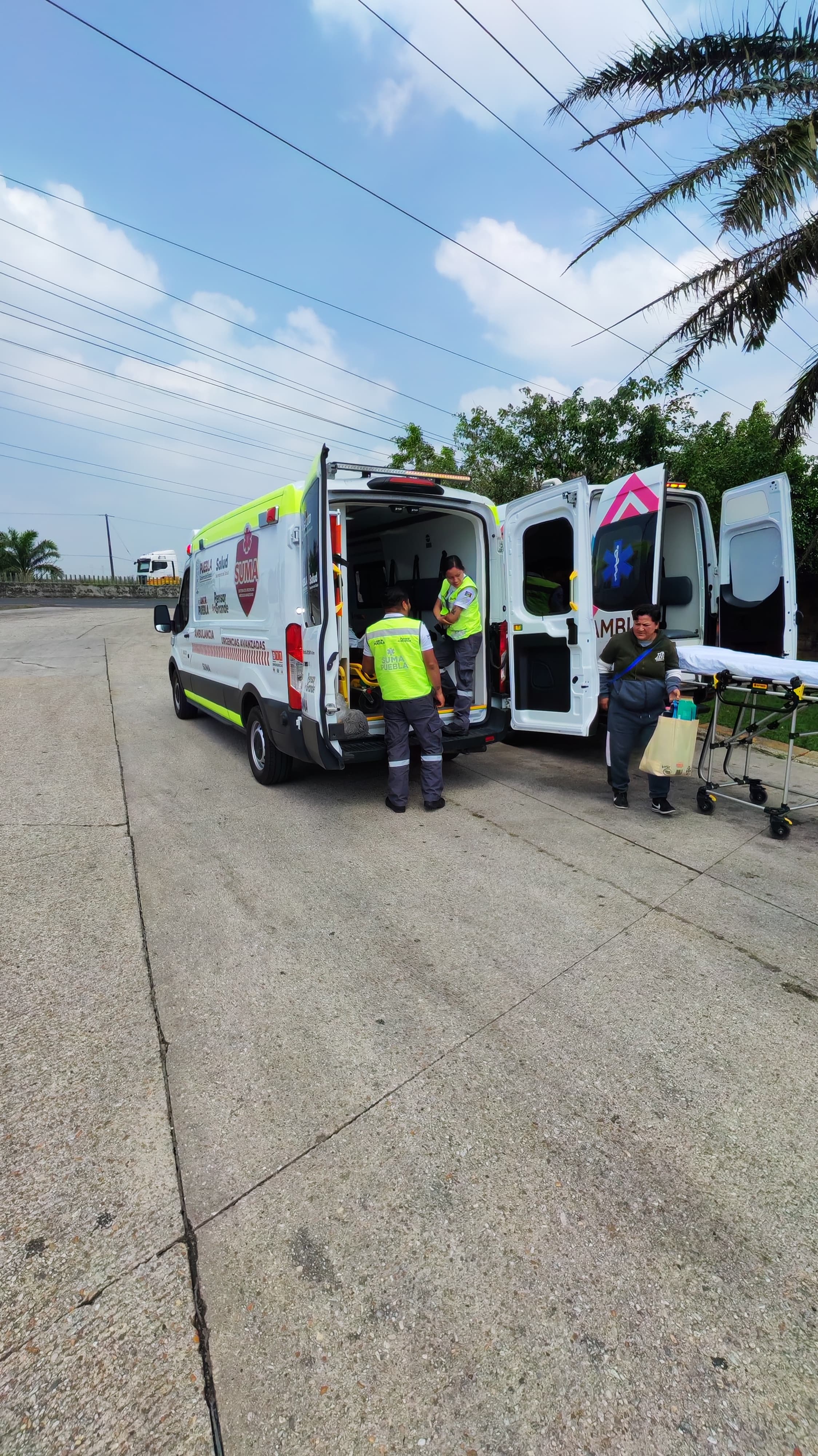 Personal de SUMA Puebla realizó la transferencia de la paciente en el municipio de Minatitlán y la entregó a una ambulancia de traslado del estado de Chiapas, que continuó el recorrido hasta su destino.