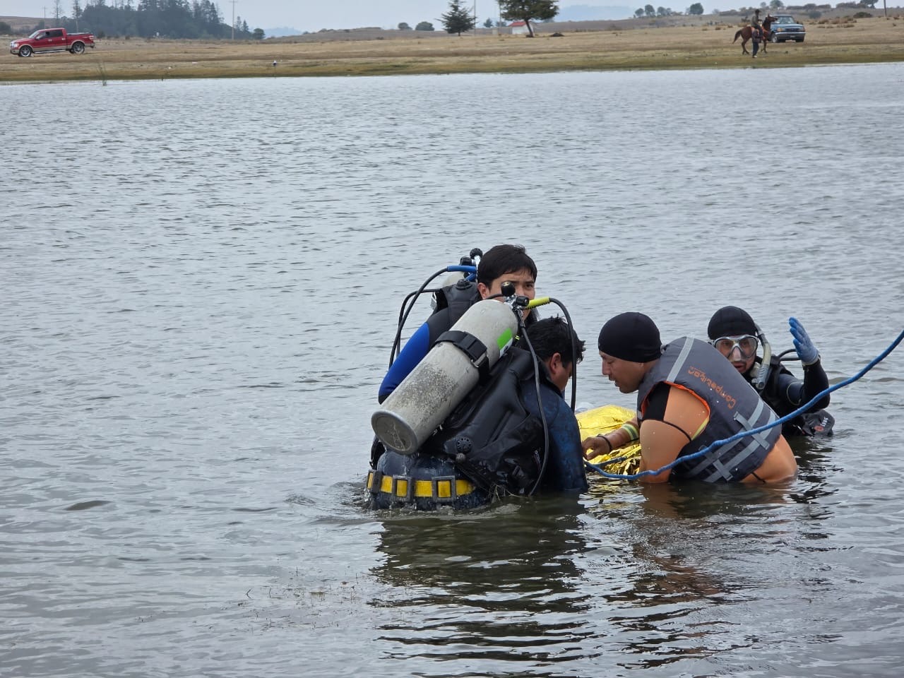 Desde el reporte del incidente se puso en marcha el operativo de búsqueda en el que participaron buzos certificados de la Secretaría de Marina (SEMAR), Guardia Nacional (GN), Policía Estatal, Cruz Roja y autoridades municipales.