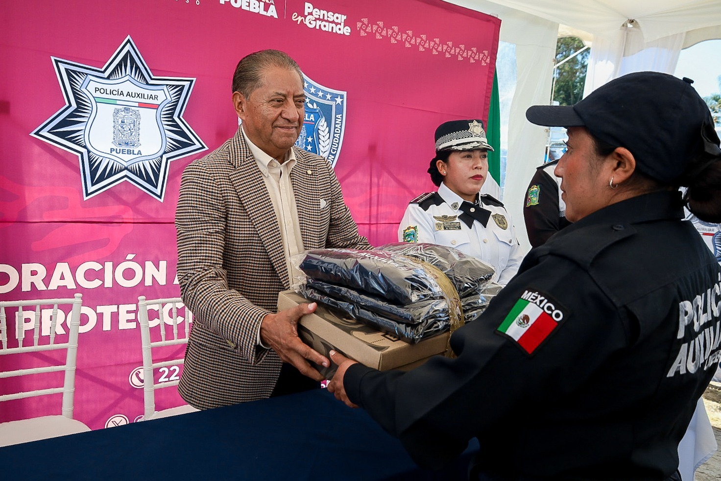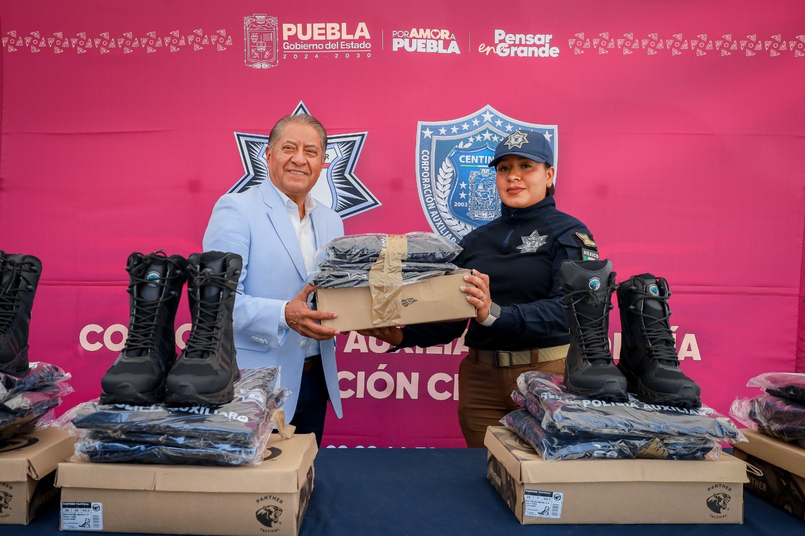 CIUDAD DE PUEBLA, Pue.- Como parte de una estrategia orientada a mejorar las condiciones operativas de las y los guardias policiales y del personal médico que integra la Corporación Auxiliar de Policía de Protección Ciudadana, el Gobierno del Estado de Puebla, encabezado por el gobernador Alejandro Armenta Mier, concluyó con la entrega de uniformes.