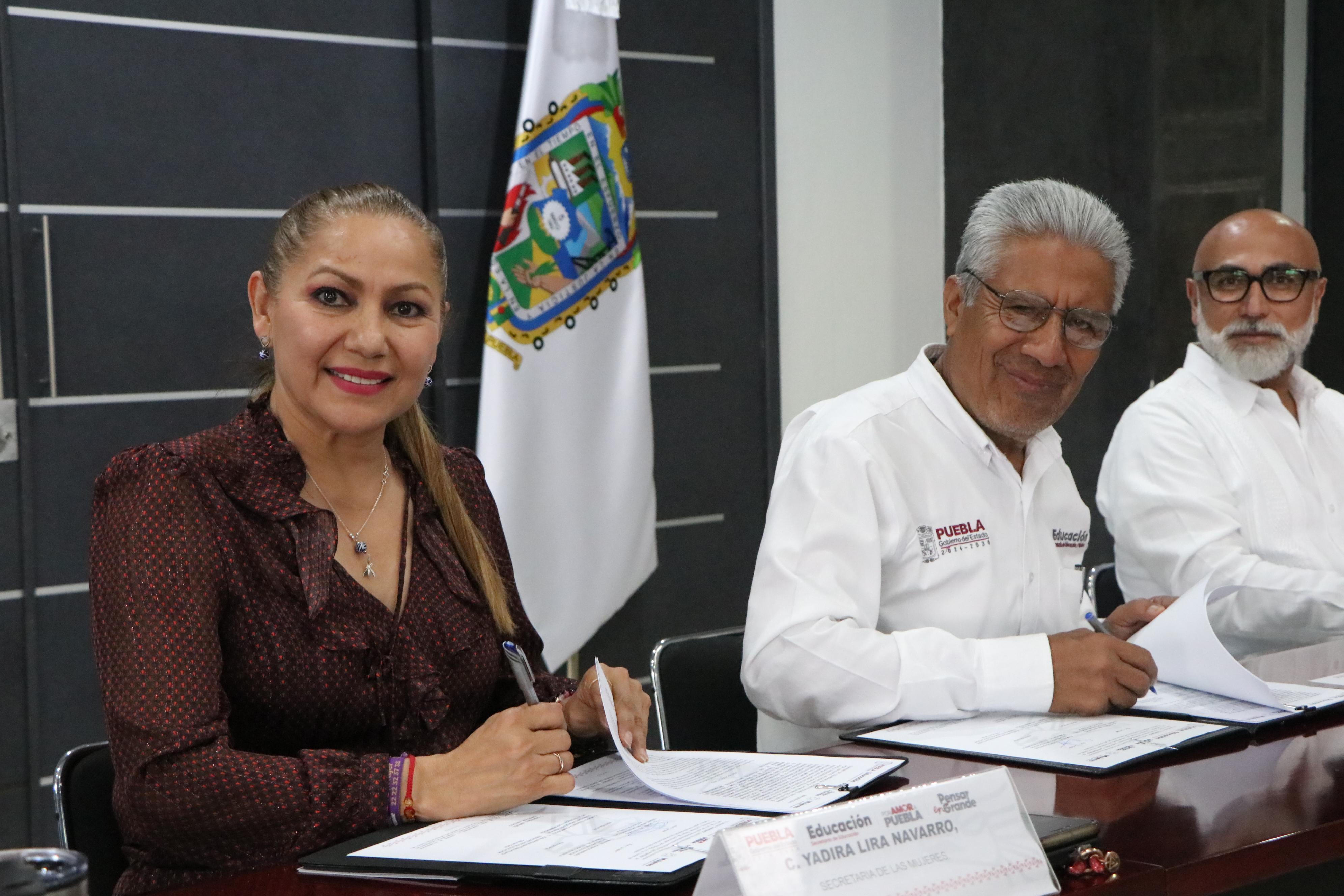 CIUDAD DE PUEBLA, Pue.- En el estado se fortalece la coordinación en favor de las comunidades educativas con la firma de un convenio entre la Secretaría de las Mujeres y la Secretaría de Educación Pública (SEP), como parte de una estrategia estatal orientada a promover espacios seguros, incluyentes y con igualdad.