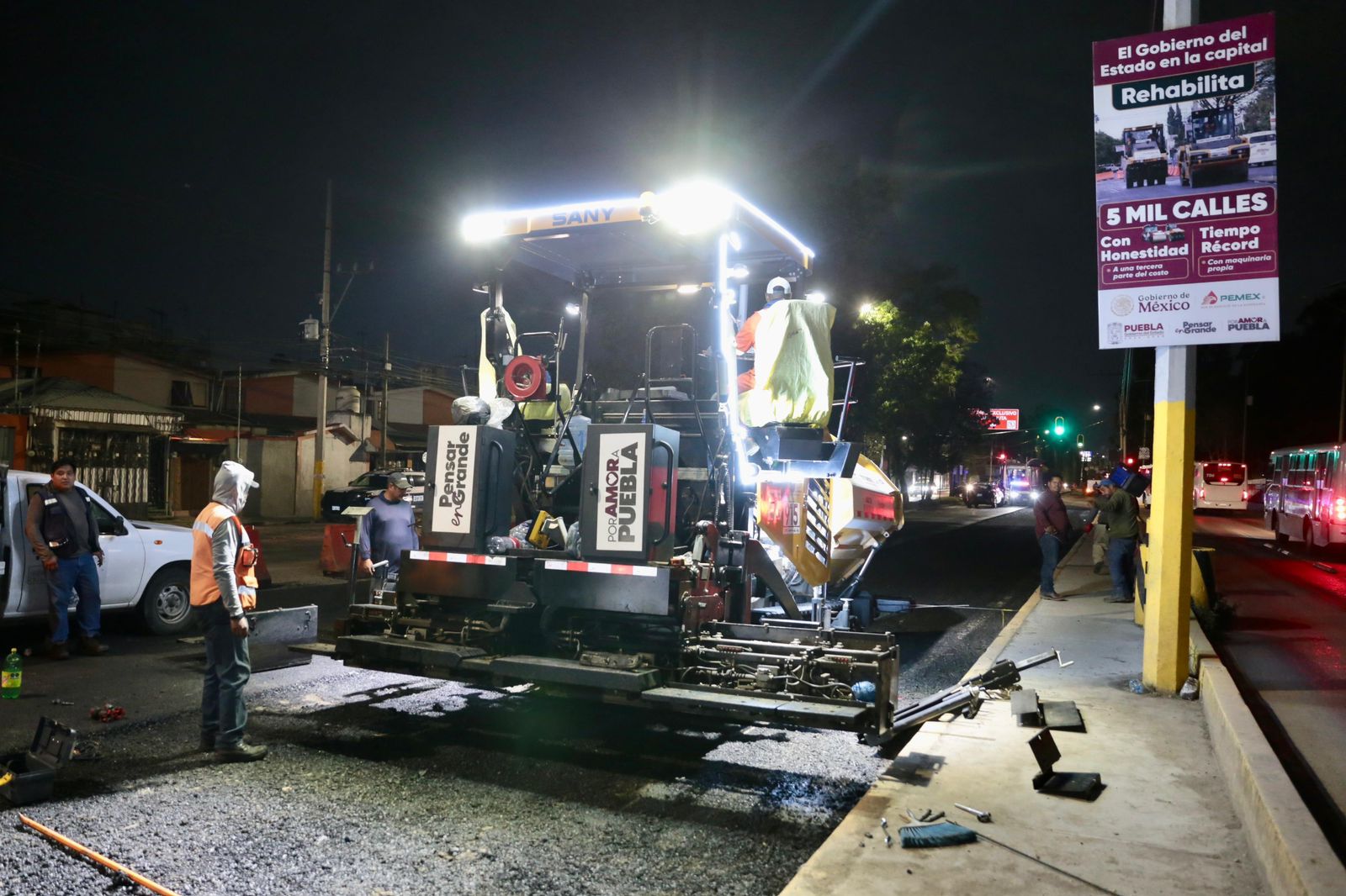 -El gobernador Alejandro Armenta Mier supervisó los trabajos nocturnos que se realizan en esta obra equivalente a 292 calles.