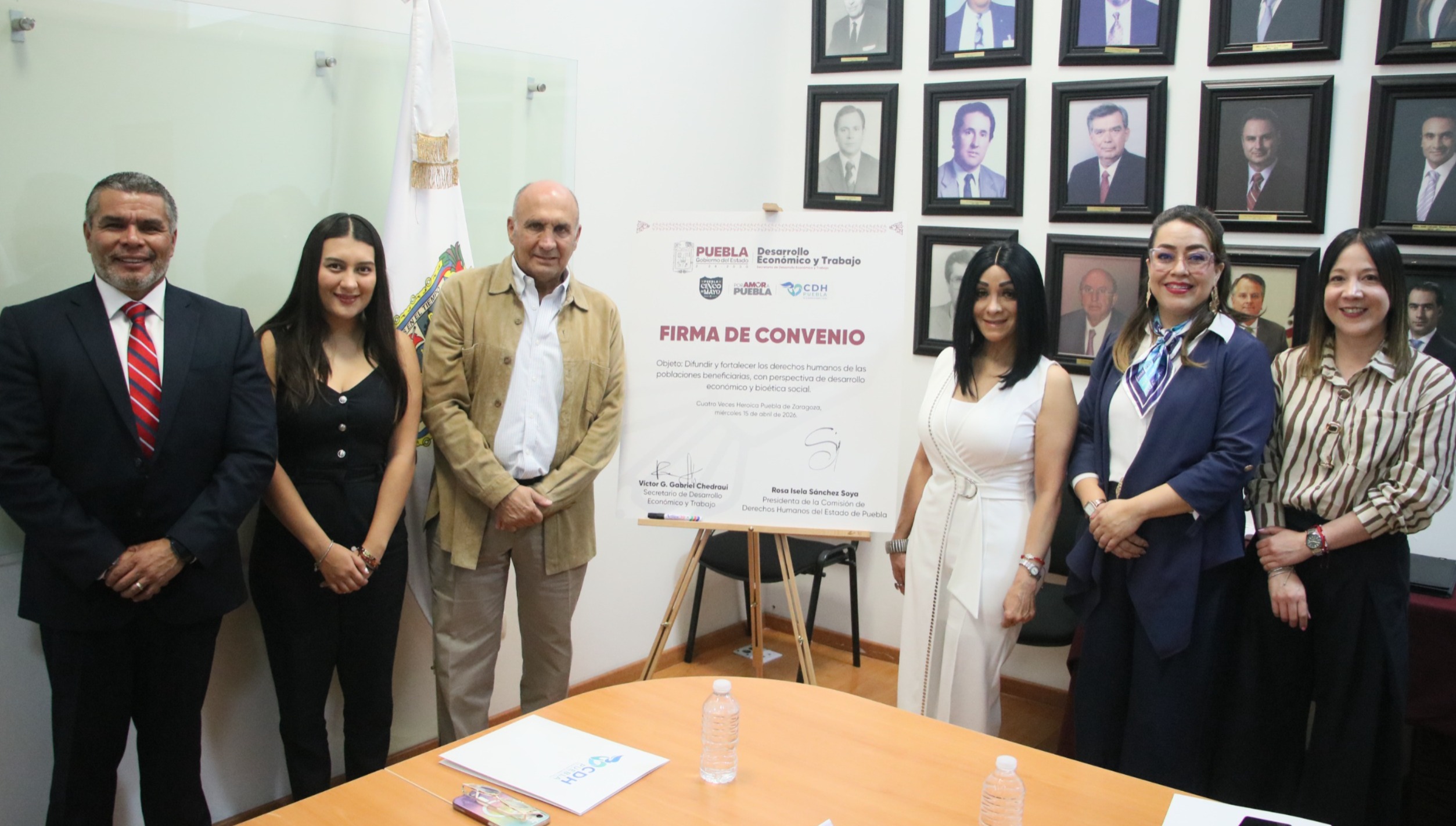 En el acto participaron la subsecretaria de Fomento Empresarial, Dafne Gaspar Santamaría; la encargada de despacho de la Secretaría Técnica Ejecutiva de la Comisión, Monserrat Mejía Barrón; el director de Seguimiento de Recomendaciones, Conciliaciones y Asuntos Jurídicos, Ricardo Giorge Garay; así como la directora de Agenda y Relaciones Públicas, Lena González Hernández, quienes acompañaron la formalización de este acuerdo interinstitucional orientado al bienestar de las y los poblanos.